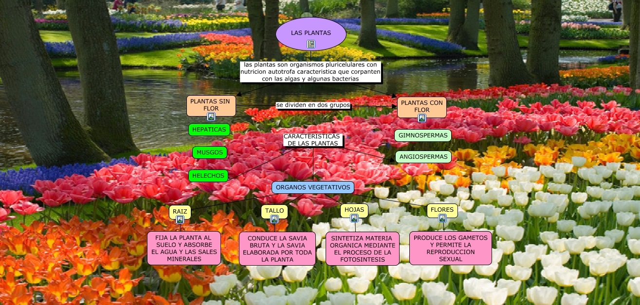 Este Cmap, tiene información relacionada con: ESO1-JAVIER_TORREGROSA-LAS PLANTAS, PLANTAS SIN FLOR se dividen en dos grupos PLANTAS CON FLOR, ORGANOS VEGETATIVOS CARACTERISTICAS DE LAS PLANTAS ANGIOSPERMAS, FLORES MMM PRODUCE LOS GAMETOS Y PERMITE LA REPRODUCCION SEXUAL, HOJAS ???? SINTETIZA MATERIA ORGANICA MEDIANTE EL PROCESO DE LA FOTOSINTESIS, TALLO ???? CONDUCE LA SAVIA BRUTA Y LA SAVIA ELABORADA POR TODA LA PLANTA, ORGANOS VEGETATIVOS ???? TALLO, LAS PLANTAS las plantas son organismos pluricelulares con nutricion autotrofa caracteristica que corpanten con las algas y algunas bacterias PLANTAS CON FLOR, ORGANOS VEGETATIVOS CARACTERISTICAS DE LAS PLANTAS HELECHOS, ORGANOS VEGETATIVOS ???? RAIZ, RAIZ ???? FIJA LA PLANTA AL SUELO Y ABSORBE EL AGUA Y LAS SALES MINERALES, ORGANOS VEGETATIVOS ???? FLORES, ORGANOS VEGETATIVOS ???? HOJAS, LAS PLANTAS las plantas son organismos pluricelulares con nutricion autotrofa caracteristica que corpanten con las algas y algunas bacterias PLANTAS SIN FLOR