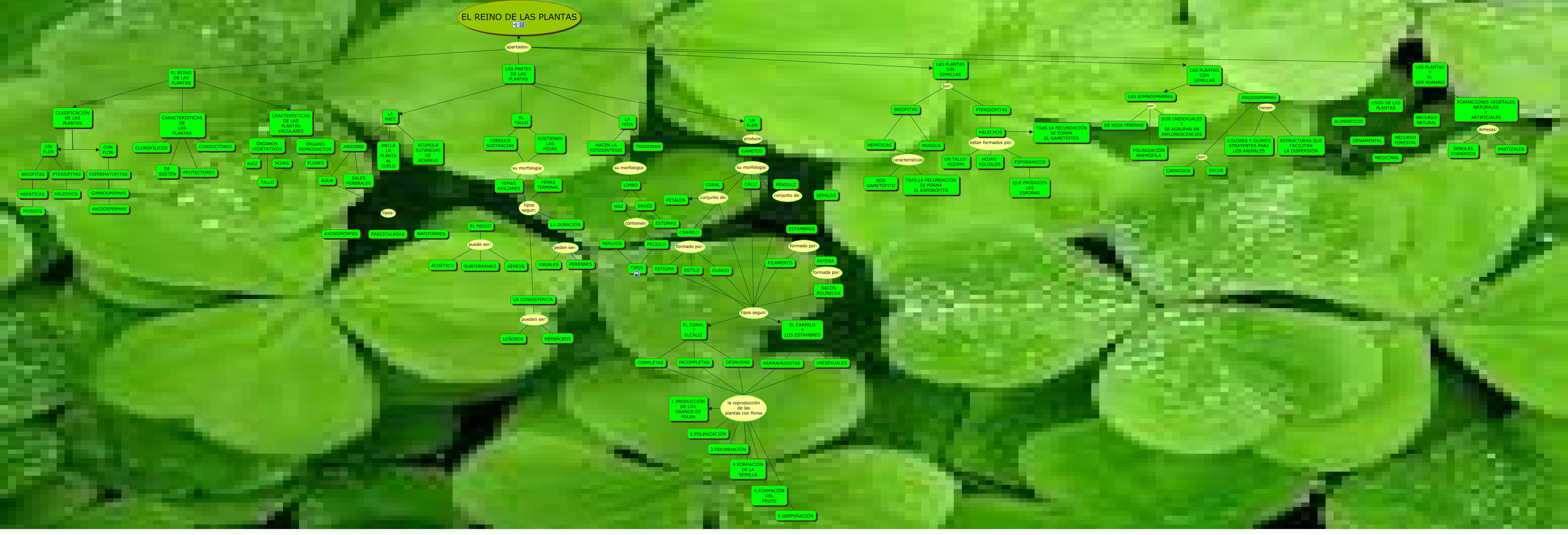 Este Cmap, tiene información relacionada con: ESO1-EDUARDO OLMEDO-CMAP TOOLS PLANTAS, LAS GIMNOSPERMAS son: SON UNISEXUALES Y SE AGRUPAN EN INFLORESCENCIAS, ESTIGMA tipos segun: EL CORAL Y ELCÁLIZ, BRIOFITAS ???? HEPÁTICAS, EL CORAL Y ELCÁLIZ ???? DESNUDAS, ANGIOSPERMAS tienen: COLORES Y OLORES ATRAYENTES PARA LOS ANIMALES, EL REINO DE LAS PLANTAS apartados: EL REINO DE LAS PLANTAS, LAS GIMNOSPERMAS son: DE HOJA PERENNE, HEPÁTICAS caracteristicas SON GAMETÓFITO, CARPELO formado por: ESTIGMA, CARPELO formado por: ESTILO, EL CORAL Y ELCÁLIZ ???? INCOMPLETAS, EL TALLO ???? CONDUCE SUSTANCIAS, SIN FLOR ???? PTERIOFITAS, LA DURACIÓN peden ser: ANUALES, EL REINO DE LAS PLANTAS apartados: LAS PLANTAS CON SEMILLAS, UNISEXUALES la reproducción de las plantas con flores 6.GERMINACIÓN, SALES MINERALES tipos: AXONOMORFAS, HERMAFRODITAS la reproducción de las plantas con flores 6.GERMINACIÓN, ANCLA LA PLANTA AL SUELO tipos: AXONOMORFAS, ANGIOSPERMAS son: CARNOSOS