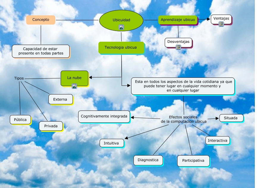 Este Cmap, tiene información relacionada con: Ubicuidad, Ubicuidad Tecnologia ubicua La nube, Ubicuidad Concepto Capacidad de estar presente en todas partes, Esta en todos los aspectos de la vida cotidiana ya que puede tener lugar en cualquier momento y en cualquier lugar Efectos sociales de la computacion ubicua Intuitiva, Esta en todos los aspectos de la vida cotidiana ya que puede tener lugar en cualquier momento y en cualquier lugar Efectos sociales de la computacion ubicua Participativa, La nube Tipos Externa, Ubicuidad Aprendizaje ubicuo Ventajas, Esta en todos los aspectos de la vida cotidiana ya que puede tener lugar en cualquier momento y en cualquier lugar Efectos sociales de la computacion ubicua Cognitivamente integrada, Esta en todos los aspectos de la vida cotidiana ya que puede tener lugar en cualquier momento y en cualquier lugar Efectos sociales de la computacion ubicua Interactiva, La nube Tipos Pública, Ubicuidad Tecnologia ubicua Esta en todos los aspectos de la vida cotidiana ya que puede tener lugar en cualquier momento y en cualquier lugar, Esta en todos los aspectos de la vida cotidiana ya que puede tener lugar en cualquier momento y en cualquier lugar Efectos sociales de la computacion ubicua Diagnostica, La nube Tipos Privada, Esta en todos los aspectos de la vida cotidiana ya que puede tener lugar en cualquier momento y en cualquier lugar Efectos sociales de la computacion ubicua Situada, Ubicuidad Aprendizaje ubicuo Desventajas