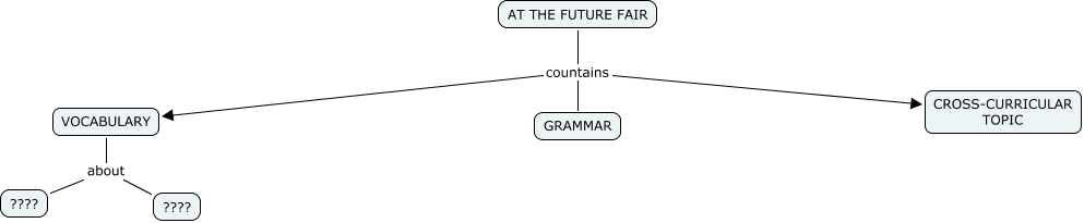 Este Cmap, tiene información relacionada con: Sin Título 2, AT THE FUTURE FAIR countains VOCABULARY, AT THE FUTURE FAIR countains GRAMMAR, AT THE FUTURE FAIR countains CROSS-CURRICULAR TOPIC, VOCABULARY about ????, VOCABULARY about ????