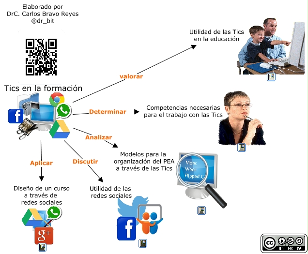 Este Cmap, tiene información relacionada con: facebook, Aplicar Diseño de un curso a través de redes sociales, Discutir Utilidad de las redes sociales, Determinar Competencias necesarias para el trabajo con las Tics, Analizar Modelos para la organización del PEA a través de las Tics, valorar Utilidad de las Tics en la educación