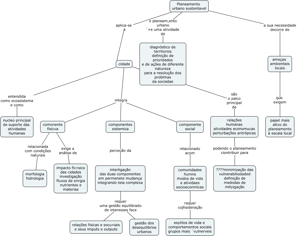 Esse mapa conceitual, produzido no IHMC CmapTools, tem a informação relacionada a: planeamento 2, cidade integra componentes sistemica, cidade integra componente social, comunidades humns modos de vida e atividaes socioeconmicas requer cojhsideração esytilos de vida e comportamentos sociais grupos mais ´vulnerveis, cidade integra comonente fisicva, comonente fisicva exige a análise de impacto fic«sico das cidades investigação fluxos de enrgia nutrientes e materias, interligação das duas componentes em permenete mudança integrando teia complexa requer uma gestão equilibrado de interesses face gestão dos desequilibrios urbanos, componentes sistemica perceção da interligação das duas componentes em permenete mudança integrando teia complexa, comonente fisicva relacionada com condições naturais morfologia hidrologia, Planeamento urbano sustentavel a sua necessidade decorre de ameças ambientais locais, Planeamento urbano sustentavel o planeam,ento urbano ´+e uma atividade de diagnóstico de territorios definição de prioridades e de ações de diferente natureza para a resolução dos problmas da sociedae, componente social relacionado acom comunidades humns modos de vida e atividaes socioeconmicas, ameças ambientais locais que exigem papel mais ativo do planeamento à escala local, interligação das duas componentes em permenete mudança integrando teia complexa requer uma gestão equilibrado de interesses face relações fisicas e socu«iais e seus imputs e outputs, relações humanas atividades economucas perturbações antrópicas podendo o planeamento ciontribuir para ????minimização das vulnerabiliodaded definição de medodas de mityigação, cidade entendida como ecossistema e como nucleo principal de suporte das atividades humanas, Planeamento urbano sustentavel aplica-se à cidade, cidade são o palco principal de relações humanas atividades economucas perturbações antrópicas