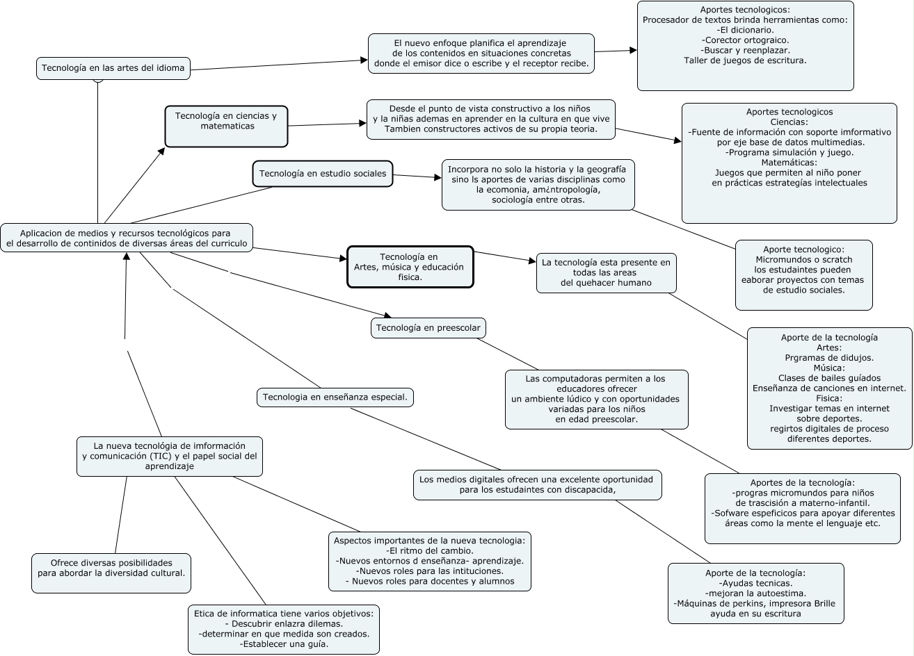 Este Cmap, tiene información relacionada con: jonathan tello, Tecnología en ciencias y matematicas ???? Desde el punto de vista constructivo a los niños y la niñas ademas en aprender en la cultura en que vive Tambien constructores activos de su propia teoria., La tecnología esta presente en todas las areas del quehacer humano ???? Aporte de la tecnología Artes: Prgramas de didujos. Música: Clases de bailes guíados Enseñanza de canciones en internet. Fisica: Investigar temas en internet sobre deportes. regirtos digitales de proceso diferentes deportes., La nueva tecnológia de imformación y comunicación (TIC) y el papel social del aprendizaje ???? Ofrece diversas posibilidades para abordar la diversidad cultural., Desde el punto de vista constructivo a los niños y la niñas ademas en aprender en la cultura en que vive Tambien constructores activos de su propia teoria. ???? Aportes tecnologicos Ciencias: -Fuente de información con soporte imformativo por eje base de datos multimedias. -Programa simulación y juego. Matemáticas: Juegos que permiten al niño poner en prácticas estrategías intelectuales, Aplicacion de medios y recursos tecnológicos para el desarrollo de continidos de diversas áreas del curriculo ???? Tecnología en Artes, música y educación fisica., Tecnología en las artes del idioma ???? El nuevo enfoque planifica el aprendizaje de los contenidos en situaciones concretas donde el emisor dice o escribe y el receptor recibe., Aporte de la tecnología: -Ayudas tecnicas. -mejoran la autoestima. -Máquinas de perkins, impresora Brille ayuda en su escritura ???? Los medios digitales ofrecen una excelente oportunidad para los estudaintes con discapacida,, La nueva tecnológia de imformación y comunicación (TIC) y el papel social del aprendizaje ???? Etica de informatica tiene varios objetivos: - Descubrir enlazra dilemas. -determinar en que medida son creados. -Establecer una guía., Aporte de la tecnología: -Ayudas tecnicas. -mejoran la autoestima. -Máquinas de perkins, impresora Brille ayuda en su escritura ???? Los medios digitales ofrecen una excelente oportunidad para los estudaintes con discapacida,, La nueva tecnológia de imformación y comunicación (TIC) y el papel social del aprendizaje ???? Aspectos importantes de la nueva tecnologia: -El ritmo del cambio. -Nuevos entornos d enseñanza- aprendizaje. -Nuevos roles para las intituciones. - Nuevos roles para docentes y alumnos, Aplicacion de medios y recursos tecnológicos para el desarrollo de continidos de diversas áreas del curriculo Tecnología en preescolar, Aplicacion de medios y recursos tecnológicos para el desarrollo de continidos de diversas áreas del curriculo Tecnologia en enseñanza especial., Tecnología en preescolar ???? Las computadoras permiten a los educadores ofrecer un ambiente lúdico y con oportunidades variadas para los niños en edad preescolar., Tecnología en estudio sociales Tecnología en ciencias y matematicas, Tecnología en Artes, música y educación fisica. ???? La tecnología esta presente en todas las areas del quehacer humano, Incorpora no solo la historia y la geografía sino ls aportes de varias disciplinas como la ecomonia, am¿ntropología, sociología entre otras. ???? Aporte tecnologico: Micromundos o scratch los estudaintes pueden eaborar proyectos con temas de estudio sociales., El nuevo enfoque planifica el aprendizaje de los contenidos en situaciones concretas donde el emisor dice o escribe y el receptor recibe. ???? Aportes tecnologicos: Procesador de textos brinda herramientas como: -El dicionario. -Corector ortograico. -Buscar y reenplazar. Taller de juegos de escritura., Aplicacion de medios y recursos tecnológicos para el desarrollo de continidos de diversas áreas del curriculo ???? Tecnología en Artes, música y educación fisica., La nueva tecnológia de imformación y comunicación (TIC) y el papel social del aprendizaje Aplicacion de medios y recursos tecnológicos para el desarrollo de continidos de diversas áreas del curriculo, Tecnologia en enseñanza especial. ???? Los medios digitales ofrecen una excelente oportunidad para los estudaintes con discapacida,