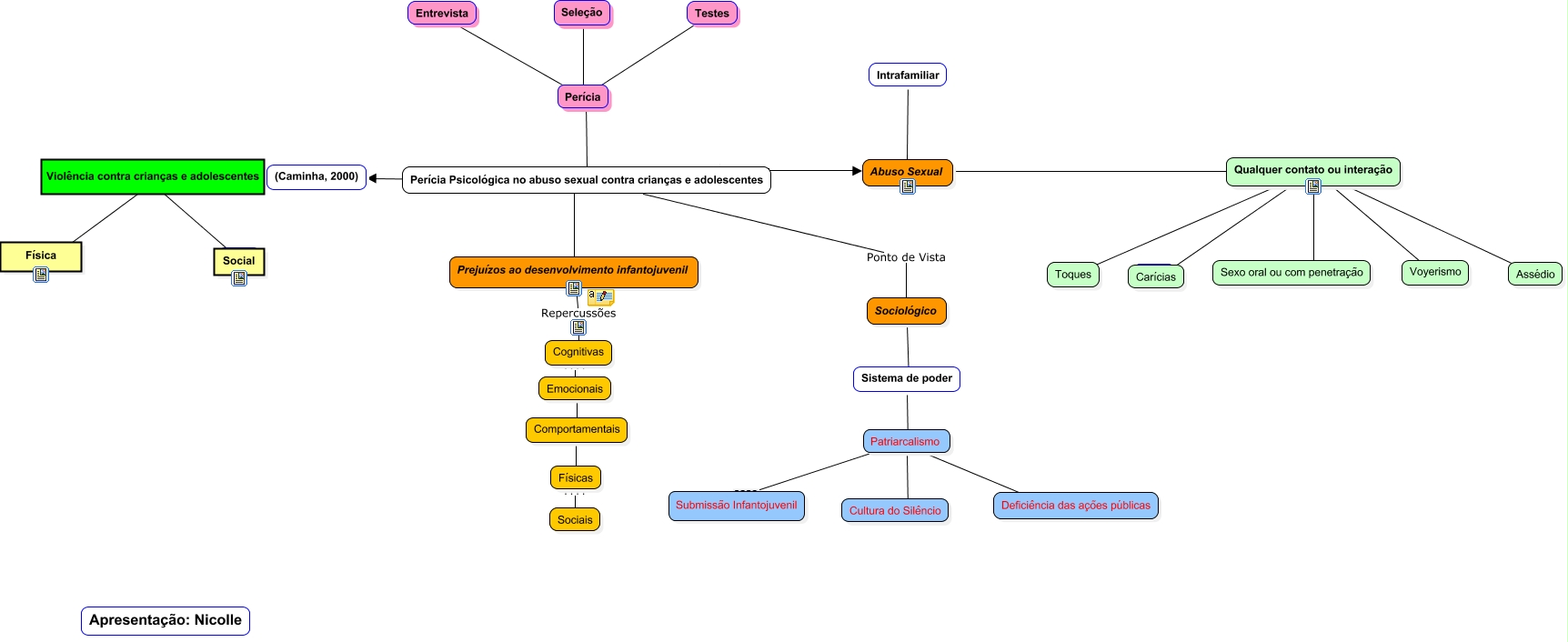 Esse mapa conceitual, produzido no IHMC CmapTools, tem a informação relacionada a: MC Assistência e Cidadania e a Violência, Qualquer contato ou interação ???? Toques, Patriarcalismo ???? ????, Patriarcalismo ???? ????, Sistema de poder ???? Patriarcalismo, Perícia ???? Entrevista, Emocionais ???? Cognitivas, Patriarcalismo ???? ????, Emocionais ???? Comportamentais, Qualquer contato ou interação ???? ????, Perícia Psicológica no abuso sexual contra crianças e adolescentes Ponto de Vista Sociológico, Perícia ???? Seleção, Perícia ???? Testes, Qualquer contato ou interação ???? Voyerismo, Perícia Psicológica no abuso sexual contra crianças e adolescentes ???? Perícia, Qualquer contato ou interação ???? Sexo oral ou com penetração, Violência contra crianças e adolescentes ???? ????, Físicas ???? Sociais, Perícia Psicológica no abuso sexual contra crianças e adolescentes ???? (Caminha, 2000), Comportamentais ???? Físicas, Prejuízos ao desenvolvimento infantojuvenil Repercussões Cognitivas