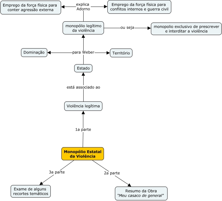 Este Cmap, tiene información relacionada con: MC Monopólio Estatal da Violência, Monopólio Estatal da Violência 3a parte Exame de alguns recortes temáticos, monopólio legítimo da violência ou seja monopolio exclusivo de prescrever e interditar a violência, Monopólio Estatal da Violência 2a parte Resumo da Obra "Meu casaco de general", monopólio legítimo da violência explica Adorno Emprego da força física para conflitos internos e guerra civil, monopólio legítimo da violência explica Adorno Emprego da força física para conter agressão externa, Violência legítima está associado ao Estado, Estado para Weber Território, Estado para Weber Dominação, Monopólio Estatal da Violência 1a parte Violência legítima, Estado para Weber monopólio legítimo da violência