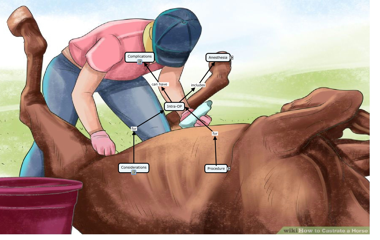 This Concept Map, created with IHMC CmapTools, has information related to: Intra-OP, Procedure for Semi-Closed Castration, Procedure for Intra-OP, Procedure for Open Castration, Intra-OP includes Anesthesia, Anesthesia Protocol for General Anesthesia, Intra-OP can have Complications, Procedure for Closed Castration, Procedure for Cryptorchidectomy, Anesthesia Protocol via Local Anesthesia, Procedure for Caslick's Procedure, Considerations for Intra-OP