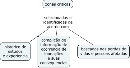 Esse mapa conceitual, produzido no IHMC CmapTools, tem a informação relacionada a: zonas criticas, zonas criticas selecionadas e identificadas de acordo com compilção de informação de ocorrencia de inunações e suas consequencias, zonas criticas selecionadas e identificadas de acordo com historico de estudos e experiencia, zonas criticas selecionadas e identificadas de acordo com baseadas nas perdas de vidas e pessoas afetadas