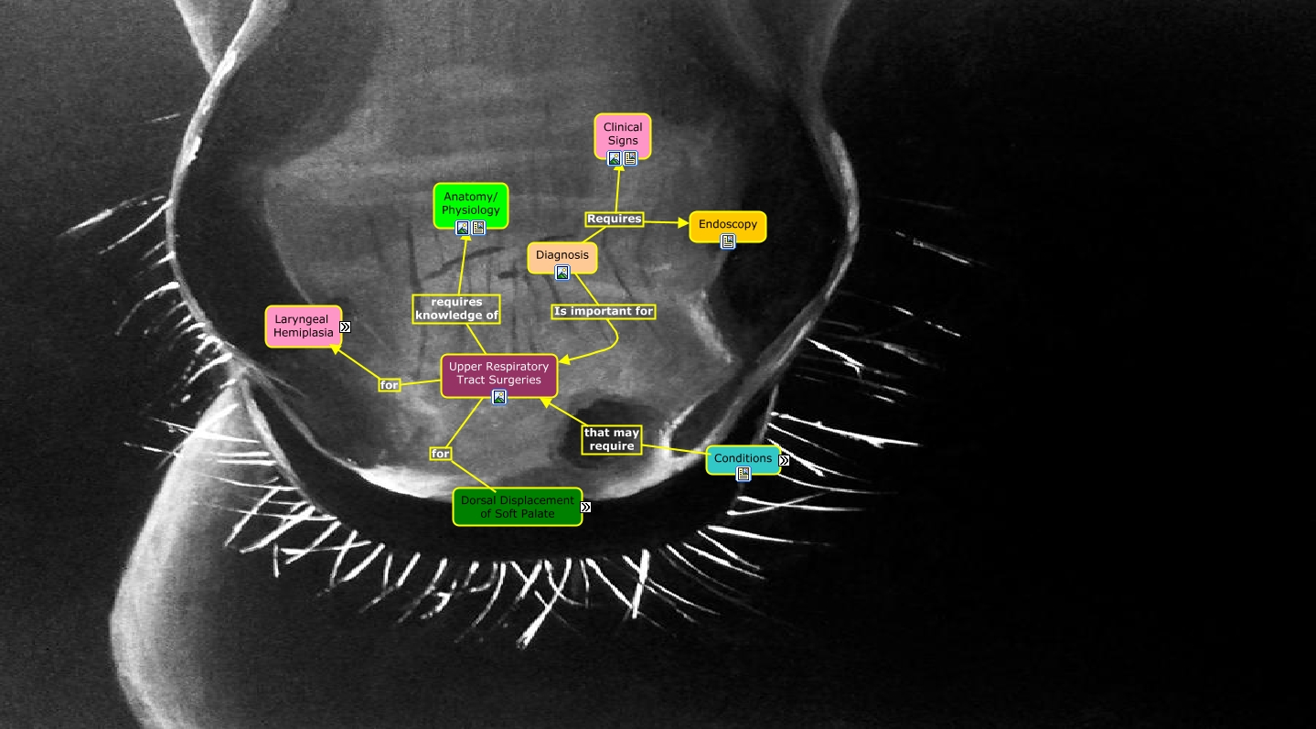 This Concept Map, created with IHMC CmapTools, has information related to: VET2018 LAS GROUP B LAB 7, Conditions includes Tracheal Collapse, Laryngeal Hemiplasia is Prosthetic Laryngoplasty, Diagnosis Is important for Upper Respiratory Tract Surgeries, Conditions includes Arytenoid Chondropathy, Diagnosis Requires Endoscopy, Prosthetic Laryngoplasty consider Pre-Op*, Conditions but not Pharyngeal Lymphoid Hyperplasia, Dorsal displacement of Soft Palate are Laryngohyoid Reduction Surgery*, Prosthetic Laryngoplasty consider Post-OP, Ventriculectomy/ Hobday consider Intra-op, Conditions that may require Upper Respiratory Tract Surgeries, Laryngohyoid Reduction Surgery* consider Pre-op, Conditions includes Masses and cysts, Dorsal displacement of Soft Palate are Staphylectomy, Ventriculectomy/ Hobday consider Pre-op, Laryngohyoid Reduction Surgery* consider Post-op*, Prosthetic Laryngoplasty consider Intra-OP, Upper Respiratory Tract Surgeries for Laryngeal Hemiplasia, Dorsal displacement of Soft Palate alternatively Cornell Collar, Upper Respiratory Tract Surgeries for Dorsal displacement of Soft Palate