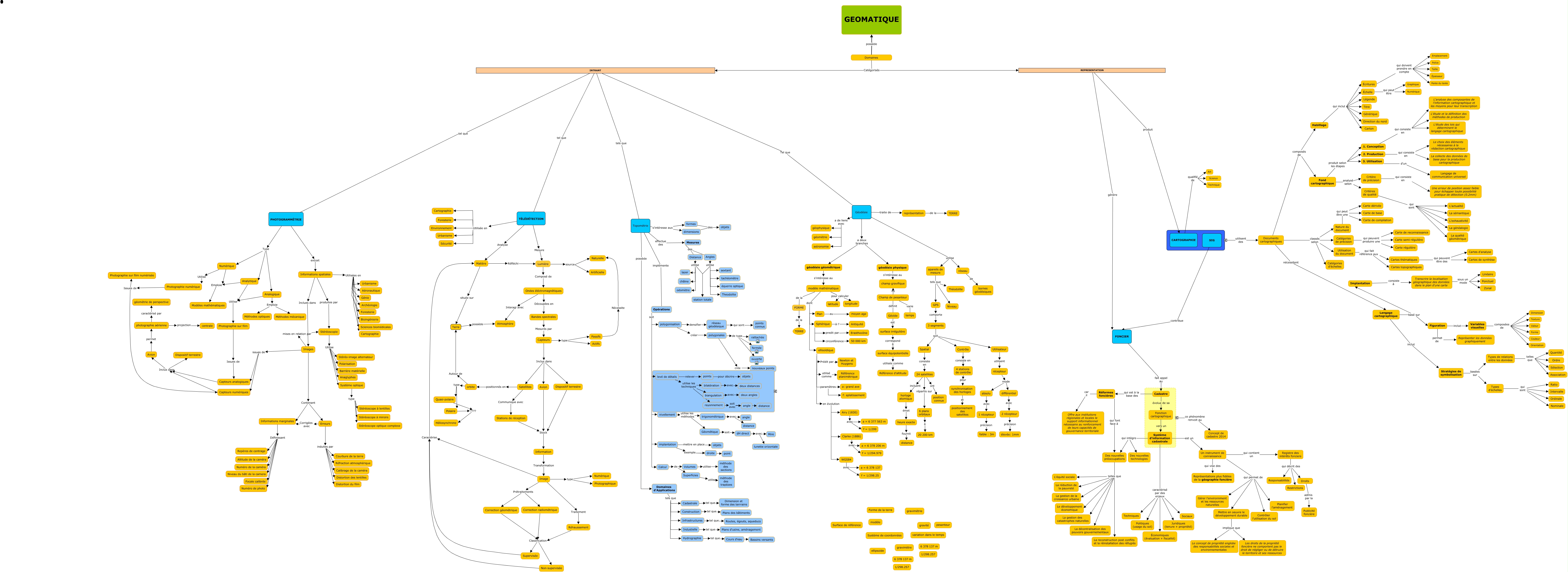 Cette carte de concepts créée avec IHMC CmapTools traite de: Geodesie-Topometrie, Géodésie traite de représentation, Image type Photographique, Des nouvelles préoccupations telles que Le développement économique, Supervisée Caractérise Matière, Un instrument de connaissance qui vise des Représentations plus fidèles de la géographie foncière, Lumière source Naturelle, Écritures qui doivent prendre en compte Emplacement, Capteurs analogiques Inclus dans Dispositif terrestre, Écritures qui doivent prendre en compte Pente du texte, Documents cartographiques classés selon Utilisation du document, Sphérique à l' Antiquité, synchronisation des horloges et positionnement des satellites, Numérique Utilise Photographie numérique, Topométrie implémente Opérations, TÉLÉDÉTECTION Utilisée en Urbanisme, Critères de qualité qui sont La sémantique, polygonisation créer polygonales, Informations spatiales Utilisées en Bioingénierie, Système d'information cadastrale caractérisé par des enjeux Politiques (usage du sol), Capteurs numériques Inclus dans Avion