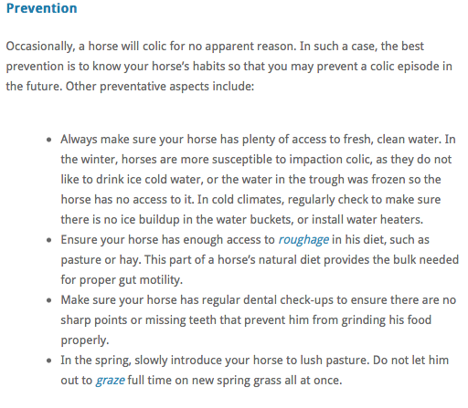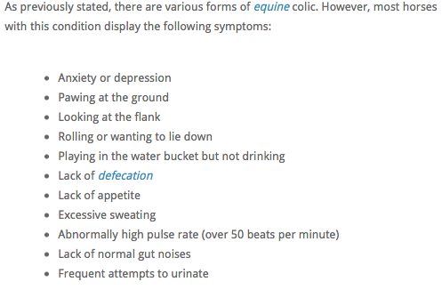 Resources for colic 24.jpg Acid-Base Balance and Electrolytes.jpg anesthesia for horses.url Blood Gases.jpg Causes of Colic.jpg Causes of colic that requires surgery.pdf classic surgery for colic.url colic.cmap colic checklist.jpg Colic overview video.url Colic Signs.url Colic signs video.url Colic surgery video.url Colic surgery Video 1.url complications-and-management.pdf Complications and prognosis.png Complictions and prognosis1.png Conference Article on Medical Management of Equine Colic.pdf Equine - Management of Colic in Equine Practice.pdf Equine Normal Parameters.jpg Evaluation of Mucous Membranes.url General Finding.url General Findings.url General Information.url General Landmarks.url General Signs.png Gut Sounds.jpg History.jpg Impaction Colic.png Nasogastric Intubation Video.url Normal Anatomical Landmarks.jpg Overview and Medical Management.url Packed Cell Volume and Total Protein.jpg Pain Assessment.jpg Peripheral Perfusion.jpg Post op management.png Post op management1.png Predisposing Factor to Colic.jpg Prevention.png Pulse and Heart Rate.jpg Rectal Examination.jpg rolling.JPG Spasmodic Colic.png Ultrasonography For Colic.pdf Vital Signs Chart.pdf