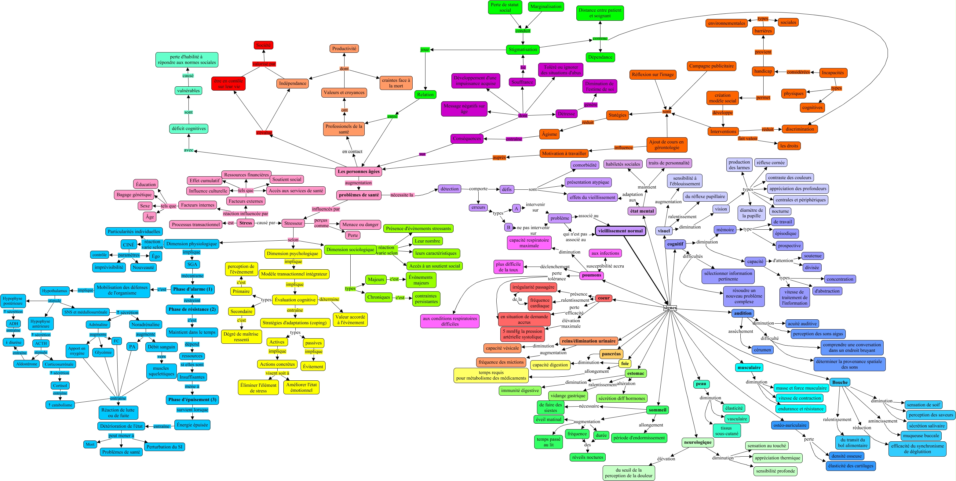 Cette carte de concepts créée avec IHMC CmapTools traite de: Schéma spécifique, vulnérables causé perte d'habilité à répondre aux normes sociales, musculaire diminution vitesse de contraction, peau diminution élasticité, barrières types environnementales, Bouche diminution sensation de soif, capacité d'attention divisée, Conséquences dont Toléré ou ignorer des situations d'abus, CINÉ paramètres Égo, estomac diminution immunité digestive, cognitif diminution capacité, fréquence des réveils noctures, CINÉ paramètres contrôle, poumons déclenchement plus difficile de la toux, musculaire diminution masse et force musculaire, vieillissement normal signes poumons, Bouche ralentissement du transit du bol alimentaire, Détérioration de l'état peut mener à Problèmes de santé, Hypothalamus stimule Hypophyse postérieure, vision types contraste des couleurs, Stresseur perçus comme Menace ou danger