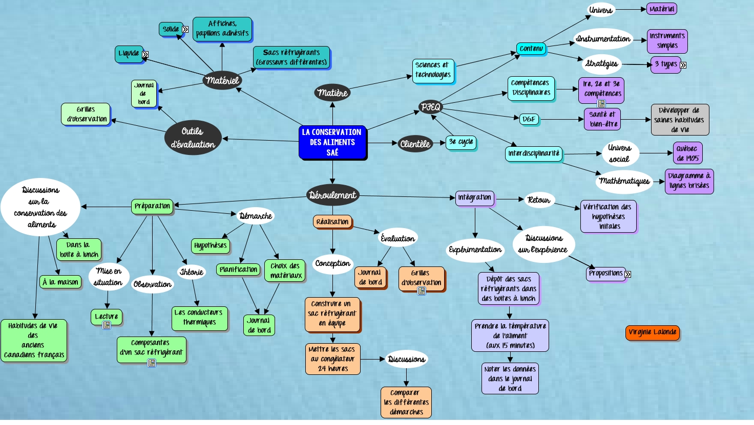 Cette carte de concepts créée avec IHMC CmapTools traite de: Lalonde Virginie, Interdisciplinarité Univers social Québec de 1905, la conservation des aliments SAÉ Outils d'évaluation Grilles d'observation, Préparation Discussions sur la conservation des aliments Habitudes de vie des anciens Canadiens français, la conservation des aliments SAÉ Matériel Éponges, sel, sacs de platique refermables, feutrine, carton, 3e cycle PFEQ Interdisciplinarité, Intégration Discussions sur l'expérience Bons conducteurs thermiques?, Choix des matériaux Journal de bord, Contenu Univers Matériel, la conservation des aliments SAÉ Déroulement Préparation, Réalisation Évaluation Grilles d'observation, Intégration Discussions sur l'expérience Facile?, la conservation des aliments SAÉ Matériel Sacs réfrigérants (Grosseurs différentes), la conservation des aliments SAÉ Déroulement Intégration, Compétences Disciplinaires 1re, 2e et 3e compétences, Préparation Discussions sur la conservation des aliments À la maison, la conservation des aliments SAÉ Matériel Journal de bord, la conservation des aliments SAÉ Matière Sciences et technologies, la conservation des aliments SAÉ Matériel Vinaigre, lait, shampooing., Préparation Démarche Planification, 3e cycle PFEQ Compétences Disciplinaires