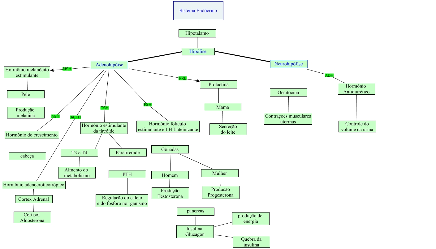 Esse mapa conceitual, produzido no IHMC CmapTools, tem a informação relacionada a: MAPA CONCEITUAL, Hormônio do crescimento ???? cabeça, Hormônio estimulante da tireóide ???? T3 e T4, Hormônio estimulante da tireóide ???? Paratireoide, Adenohipóise hGH Hormônio do crescimento, PTH ???? Regulação do calcio e do fosforo no rganismo, pancreas ???? Insulina Glucagon, Prolactina ???? Mama, Sistema Endócrino ???? Hipotálamo, Hormônio adenocroticotrópico ???? Cortex Adrenal, Hipófise ???? Adenohipóise, Pele ???? Produção melanina, Mulher Produção Progesterona, Homem ???? Produção Testosterona, Neurohipófise ADH Hormônio Antidiurético, Insulina Glucagon ???? Quebra da insulina, Cortex Adrenal ???? Cortisol Aldosterona, Hormônio folículo estimulante e LH Luteinizante ???? Gônadas, Neurohipófise ???? Occitocina, Hipófise ???? Neurohipófise, Gônadas ???? Homem
