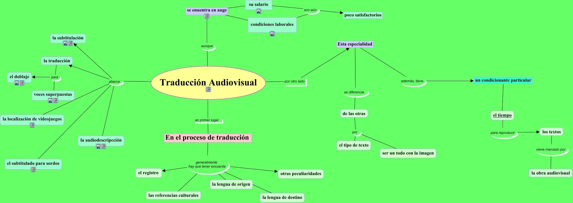 Este Cmap, tiene información relacionada con: Traducción audiovisual, Traducción Audiovisual abarca la audiodescripcción, el tiempo para reproducir los textos, la traducción para el doblaje, Traducción Audiovisual abarca el subtitulado para sordos, Traducción Audiovisual abarca la subtitulación, Traducción Audiovisual por otro lado Esta especialidad, En el proceso de traducción generalmente hay que tener encuenta la lengua de destino, condiciones laborales son aún poco satisfactorios, En el proceso de traducción generalmente hay que tener encuenta el registro, Traducción Audiovisual en primer lugar En el proceso de traducción, En el proceso de traducción generalmente hay que tener encuenta las referencias culturales, En el proceso de traducción generalmente hay que tener encuenta otras peculiaridades, se enuentra en auge ???? su salario, de las otras por ser un todo con la imagen, Traducción Audiovisual abarca la traducción, la traducción para voces superpuestas, se enuentra en auge ???? condiciones laborales, Traducción Audiovisual aunque se enuentra en auge, los textos viene marcado por la obra audiovisual, En el proceso de traducción generalmente hay que tener encuenta la lengua de origen