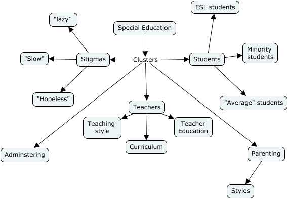 This Concept Map, created with IHMC CmapTools, has information related to: Mountain Topology, Students ESL students, Stigmas "lazy'", Parenting Styles, Teachers Curriculum, Special Education Clusters Parenting, Stigmas "Hopeless", Special Education Clusters Stigmas, Teachers Teacher Education, Teachers Teaching style, Students "Average" students, Students Minority students, Special Education Clusters Adminstering, Special Education Clusters Students, Stigmas "Slow", Special Education Clusters Teachers