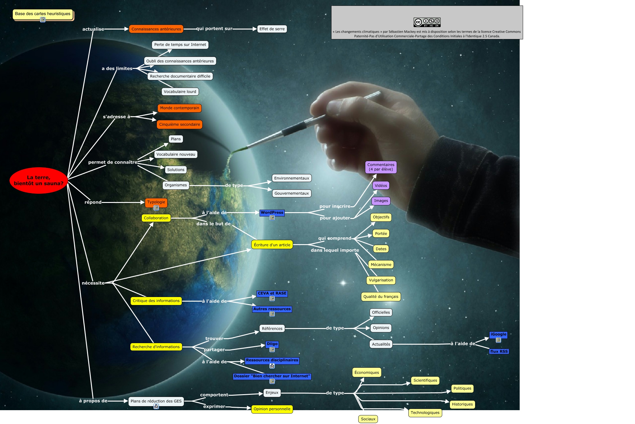 Cette carte de concepts créée avec IHMC CmapTools traite de: Carte conceptuelle, Plans de réduction des GES exprimer Opinion personnelle, Actualités à l'aide de flux RSS, La terre, bientôt un sauna? a des limites Perte de temps sur Internet, La terre, bientôt un sauna? nécessite Recherche d'informations, Connaissances antérieures qui portent sur Effet de serre, WordPress pour inscrire Commentaires (4 par élève), La terre, bientôt un sauna? a des limites Vocabulaire lourd, Écriture d'un article dans lequel importe Vulgarisation, La terre, bientôt un sauna? nécessite Écriture d'un article, Écriture d'un article qui comprend Portée, WordPress pour ajouter Vidéos, Recherche d'informations trouver Références, La terre, bientôt un sauna? nécessite Critique des informations, Recherche d'informations partager Diigo, Écriture d'un article qui comprend Dates, WordPress pour ajouter Images, Écriture d'un article qui comprend Objectifs, Organismes de type Gouvernementaux, Critique des informations à l'aide de Autres ressources, La terre, bientôt un sauna? permet de connaître Organismes