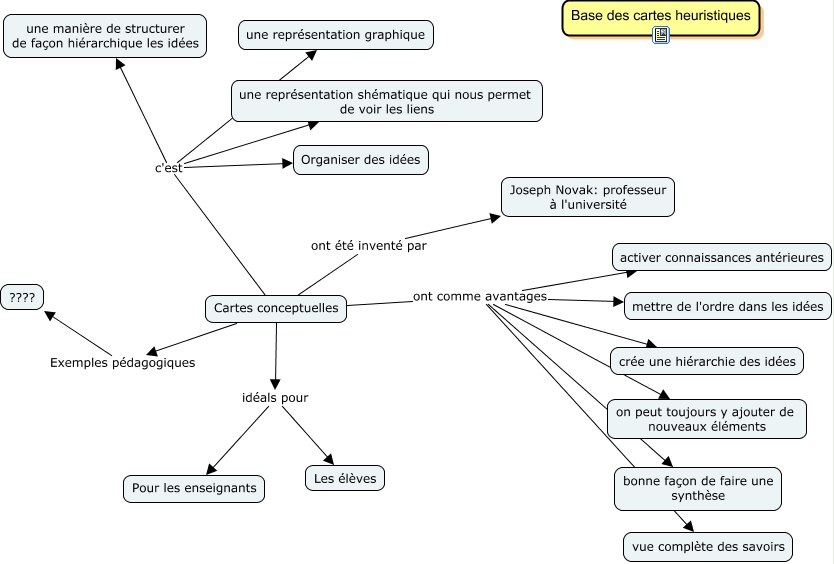 Cette carte de concepts créée avec IHMC CmapTools traite de: Cartes conceptuelles2, Cartes conceptuelles ont comme avantages mettre de l'ordre dans les idées, Cartes conceptuelles ont comme avantages activer connaissances antérieures, Cartes conceptuelles ont été inventé par Joseph Novak: professeur à l'université, Cartes conceptuelles idéals pour Pour les enseignants, Cartes conceptuelles c'est une manière de structurer de façon hiérarchique les idées, Cartes conceptuelles ont comme avantages crée une hiérarchie des idées, Cartes conceptuelles ont comme avantages vue complète des savoirs, Cartes conceptuelles c'est Organiser des idées, Cartes conceptuelles Exemples pédagogiques ????, Cartes conceptuelles c'est une représentation graphique, Cartes conceptuelles c'est une représentation shématique qui nous permet de voir les liens, Cartes conceptuelles idéals pour Les élèves, Cartes conceptuelles ont comme avantages on peut toujours y ajouter de nouveaux éléments, Cartes conceptuelles ont comme avantages bonne façon de faire une synthèse