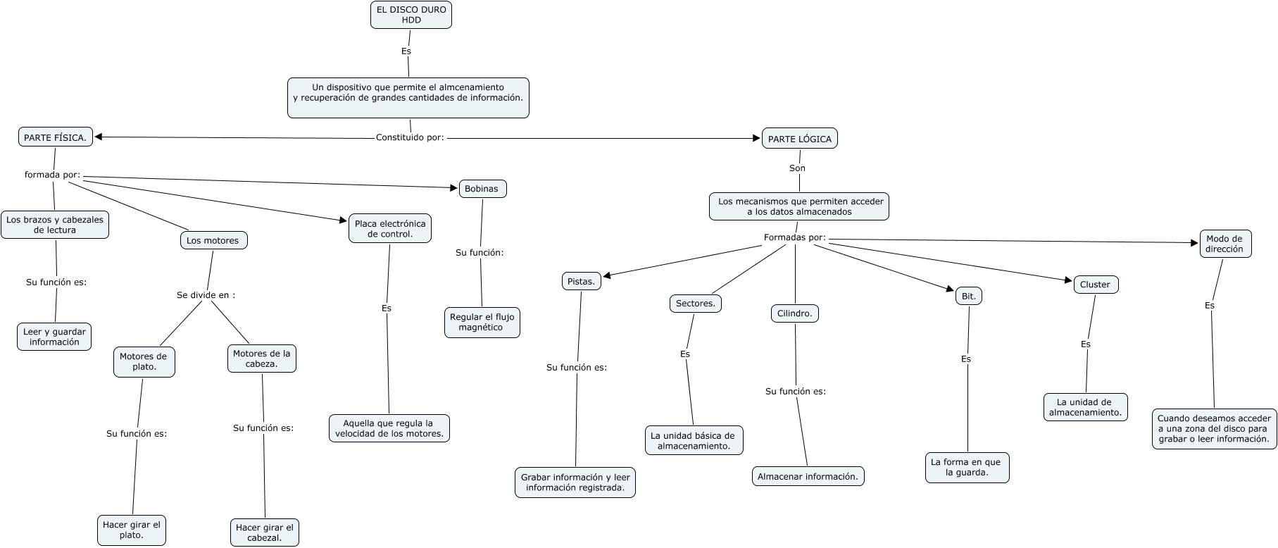 This Concept Map, created with IHMC CmapTools, has information related to: Mapa Conceptual HDD_Marly Brigidh Yaruro Sánchez, Los mecanismos que permiten acceder a los datos almacenados Formadas por: Bit., Los motores Se divide en : Motores de plato., Los mecanismos que permiten acceder a los datos almacenados Formadas por: Modo de dirección, Los mecanismos que permiten acceder a los datos almacenados Formadas por: Sectores., Bobinas Su función: Regular el flujo magnético, Cilindro. Su función es: Almacenar información., Los mecanismos que permiten acceder a los datos almacenados Formadas por: Cilindro., EL DISCO DURO HDD Es Un dispositivo que permite el almcenamiento y recuperación de grandes cantidades de información., Los mecanismos que permiten acceder a los datos almacenados Formadas por: Pistas., Modo de dirección Es Cuando deseamos acceder a una zona del disco para grabar o leer información., PARTE FÍSICA. formada por: Bobinas, Motores de la cabeza. Su función es: Hacer girar el cabezal., PARTE FÍSICA. formada por: Los motores, Los motores Se divide en : Motores de la cabeza., Sectores. Es La unidad básica de almacenamiento., Pistas. Su función es: Grabar información y leer información registrada., Placa electrónica de control. Es Aquella que regula la velocidad de los motores., Bit. Es La forma en que la guarda., Un dispositivo que permite el almcenamiento y recuperación de grandes cantidades de información. Constituido por: PARTE LÓGICA, Los brazos y cabezales de lectura Su función es: Leer y guardar información