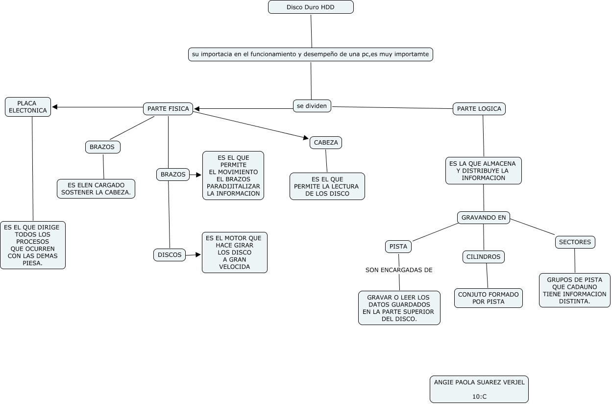 This Concept Map, created with IHMC CmapTools, has information related to: angie, ES LA QUE ALMACENA Y DISTRIBUYE LA INFORMACION F GRAVANDO EN, CABEZA ???? ES EL QUE PERMITE LA LECTURA DE LOS DISCO, GRAVANDO EN ???? PISTA, SECTORES ???? GRUPOS DE PISTA QUE CADAUNO TIENE INFORMACION DISTINTA., GRAVANDO EN ???? CILINDROS, PARTE FISICA ???? DISCOS, PARTE FISICA ???? BRAZOS, PARTE LOGICA ???? ES LA QUE ALMACENA Y DISTRIBUYE LA INFORMACION, su importacia en el funcionamiento y desempeño de una pc,es muy importamte ???? se dividen, GRAVANDO EN ???? SECTORES, PARTE FISICA ???? BRAZOS, BRAZOS ???? ES ELEN CARGADO SOSTENER LA CABEZA., PLACA ELECTONICA ???? ES EL QUE DIRIGE TODOS LOS PROCESOS QUE OCURREN CON LAS DEMAS PIESA., BRAZOS ???? ES EL QUE PERMITE EL MOVIMIENTO EL BRAZOS PARADIJITALIZAR LA INFORMACION, Disco Duro HDD ???? su importacia en el funcionamiento y desempeño de una pc,es muy importamte, se dividen ???? PARTE LOGICA, PARTE FISICA ???? PLACA ELECTONICA, PISTA SON ENCARGADAS DE GRAVAR O LEER LOS DATOS GUARDADOS EN LA PARTE SUPERIOR DEL DISCO., se dividen ???? PARTE FISICA, CILINDROS ???? CONJUTO FORMADO POR PISTA