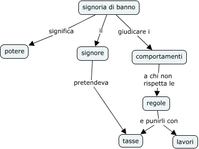 Questa Cmap, creata con IHMC CmapTools, contiene informazioni relative a: 139 signoria di banno camatta - gazulli, signore pretendeva tasse, regole e punirli con tasse, comportamenti a chi non rispetta le regole, regole e punirli con lavori, signoria di banno significa potere, signoria di banno il signore, signoria di banno giudicare i comportamenti