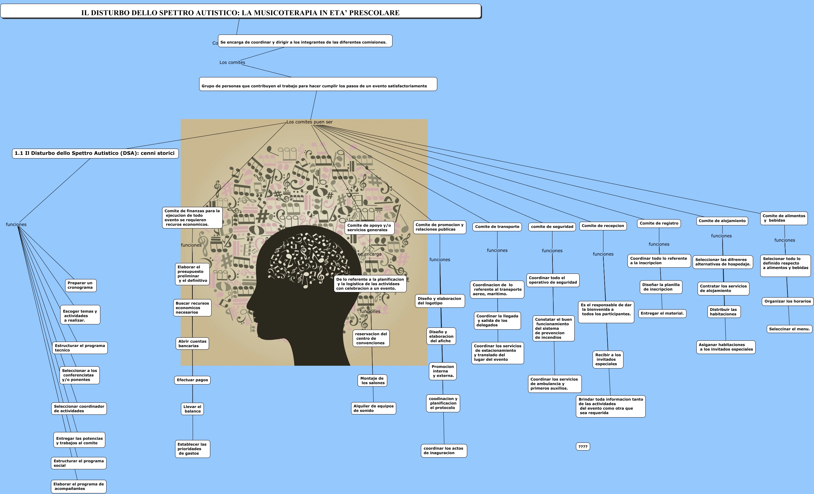 Questa Cmap, creata con IHMC CmapTools, contiene informazioni relative a: vanezotta, 1.1 Il Disturbo dello Spettro Autistico (DSA): cenni storici Los comites puen ser Comite de alimentos y bebidas, 1.1 Il Disturbo dello Spettro Autistico (DSA): cenni storici funciones Entregar las potencias y trabajos al comite, Comite de finanzas para la ejecucion de todo evento se requieren recuros economicos. Los comites puen ser Comite de registro, De lo referente a la planificacion y la logistica de las actividaes con celebracion a un evento. funciones Alquiler de equipos de sonido, Comite de alimentos y bebidas funciones Selecionar todo lo definido respecto a alimentos y bebidas, Comite de transporte funciones Coordinar la llegada y salida de los delegados, Comite de apoyo y/o servicios generales Los comites puen ser Comite de recepcion, comite de seguridad funciones Coordinar los servicios de ambulancia y primeros auxilios., Comite de finanzas para la ejecucion de todo evento se requieren recuros economicos. funciones Llevar el balance, Comite de alojamiento funciones Contratar los servicios de alojamiento, Comite de promocion y relaciones publicas Los comites puen ser Comite de alimentos y bebidas, Grupo de personas que contribuyen el trabajo para hacer cumplir los pasos de un evento satisfactoriamente Los comites puen ser Comite de alojamiento, Grupo de personas que contribuyen el trabajo para hacer cumplir los pasos de un evento satisfactoriamente Los comites puen ser Comite de transporte, Comite de alojamiento funciones Seleccionar las difrenres alternativas de hospedaje., Comite de finanzas para la ejecucion de todo evento se requieren recuros economicos. funciones Efectuar pagos, 1.1 Il Disturbo dello Spettro Autistico (DSA): cenni storici Los comites puen ser Comite de registro, Comite de finanzas para la ejecucion de todo evento se requieren recuros economicos. Los comites puen ser Comite de recepcion, Comite de apoyo y/o servicios generales Los comites puen ser Comite de alojamiento, 1.1 Il Disturbo dello Spettro Autistico (DSA): cenni storici funciones Escoger temas y actividades a realizar., Comite de finanzas para la ejecucion de todo evento se requieren recuros economicos. Los comites puen ser Comite de alojamiento
