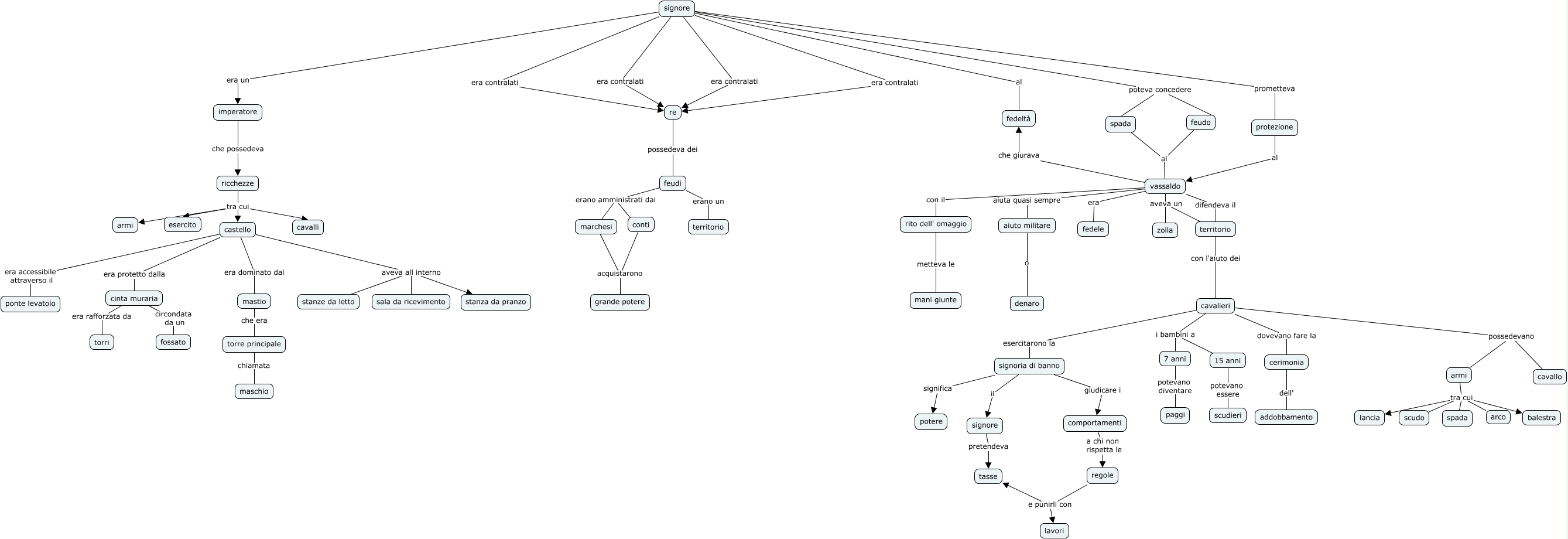 Questa Cmap, creata con IHMC CmapTools, contiene informazioni relative a: mappa di sintesi camatta-gazulli finita da camatta, spada al vassaldo, cavalieri possedevano cavallo, cavalieri i bambini a 15 anni, signore poteva concedere spada, ricchezze tra cui armi, aiuto militare o denaro, regole e punirli con tasse, 15 anni potevano essere scudieri, armi tra cui balestra, territorio con l'aiuto dei cavalieri, mastio che era torre principale, vassaldo aveva un territorio, cavalieri esercitarono la signoria di banno, cinta muraria era rafforzata da torri, armi tra cui spada, re possedeva dei feudi, torre principale chiamata maschio, signore era contralati re, protezione al vassaldo, imperatore che possedeva ricchezze