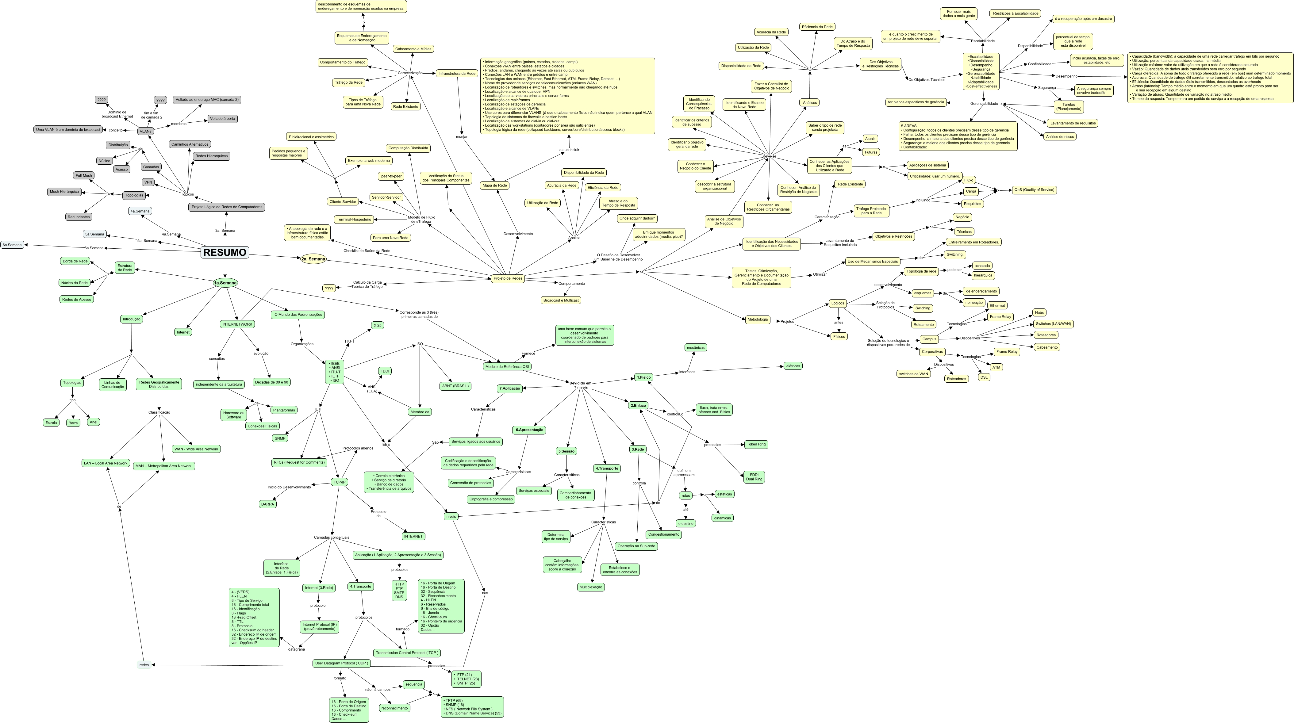 Esse mapa conceitual, produzido no IHMC CmapTools, tem a informação relacionada a: resumo, User Datagram Protocol ( UDP ) formato 16 - Porta de Origem 16 - Porta de Destino 16 - Comprimento 16 - Check-sum Dados ..., RESUMO 1a.Semana O Mundo das Padronizações, Projeto de Redes Análise Disponibilidade da Rede, Infraestrutura da Rede montar Mapa de Rede, Projeto de Redes Análise Utilização da Rede, • IEEE • ANSI • ITU-T • IETF • ISO IETF RFCs (Request for Comments), 3.Rede controla Operação na Sub-rede, Análise de Objetivos de Negócio deve-se Conhecer o Negócio do Cliente, Estrutura de Rede x Borda de Rede, INTERNETWORK evolução Décadas de 80 e 90, independente da arquitetura de Conexões Físicas, Projeto Lógico de Redes de Computadores Tópicos VLANs, O Mundo das Padronizações Organizações • IEEE • ANSI • ITU-T • IETF • ISO, Corporativas Tecnologias Frame Relay, TCP/IP Camadas conceituais Aplicação (1.Aplicação, 2.Apresentação e 3.Sessão), Projeto de Redes Análise Eficiência da Rede, Projeto de Redes O Desafio de Desenvolver um Baseline de Desempenho Em que momentos adquirir dados (média, pico)?, TCP/IP Camadas conceituais Interface de Rede (2.Enlace, 1.Física), 2.Enlace protocolos Token Ring, Projeto de Redes Checklist de Saúde da Rede • A topologia de rede e a infraestrutura física estão bem documentadas.