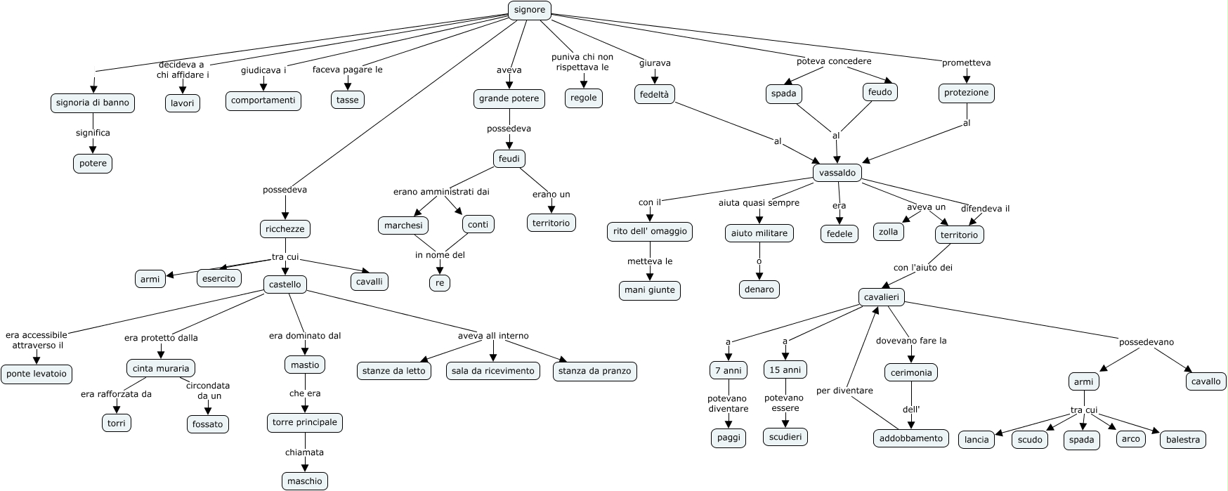 Questa Cmap, creata con IHMC CmapTools, contiene informazioni relative a: mappa di sintesi camatta, armi tra cui scudo, rito dell' omaggio metteva le mani giunte, armi tra cui balestra, signore prometteva protezione, feudi erano amministrati dai conti, torre principale chiamata maschio, territorio con l'aiuto dei cavalieri, feudo al vassaldo, mastio che era torre principale, signore giurava fedeltà, castello era accessibile attraverso il ponte levatoio, ricchezze tra cui castello, fedeltà al vassaldo, vassaldo con il rito dell' omaggio, aiuto militare o denaro, vassaldo aveva un territorio, cavalieri a 15 anni, castello aveva all interno sala da ricevimento, cavalieri a 7 anni, signore giudicava i comportamenti
