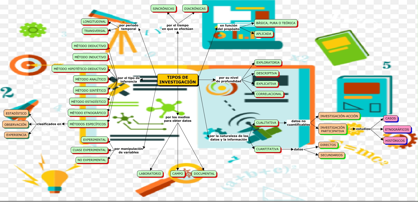 Este Cmap, tiene información relacionada con: Tipos de Investigación, INVESTIGACIÓN PARTICIPATIVA estudios CASOS, TIPOS DE INVESTIGACIÓN en función del propósito APLICADA, TIPOS DE INVESTIGACIÓN por su nivel de profundidad EXPLORATORIA, TIPOS DE INVESTIGACIÓN por su nivel de profundidad EXPLICATIVA, TIPOS DE INVESTIGACIÓN por el tipo de inferencia MÉTODO SINTÉTICO, TIPOS DE INVESTIGACIÓN por la naturaleza de los datos y la información CUALITATIVA, TIPOS DE INVESTIGACIÓN por el tipo de inferencia MÉTODO DEDUCTIVO, CUALITATIVA datos no cuantificables INVESTIGACIÓN PARTICIPATIVA, MÉTODOS ESPECÍFICOS clasificados en EXPERIENCIA, TIPOS DE INVESTIGACIÓN por los medios para obter datos LABORATORIO, INVESTIGACIÓN PARTICIPATIVA estudios ETNOGRÁFICOS, TIPOS DE INVESTIGACIÓN por los medios para obter datos DOCUMENTAL, TIPOS DE INVESTIGACIÓN por periodo temporal TRANSVERSAL, TIPOS DE INVESTIGACIÓN por los medios para obter datos CAMPO, TIPOS DE INVESTIGACIÓN por el tipo de inferencia MÉTODO ETNOGRÁFICO, TIPOS DE INVESTIGACIÓN por su nivel de profundidad DESCRIPTIVA, TIPOS DE INVESTIGACIÓN por el tiempo en que se efectúan DIACRÓNICAS, TIPOS DE INVESTIGACIÓN por el tiempo en que se efectúan SINCRÓNICAS, TIPOS DE INVESTIGACIÓN por el tipo de inferencia MÉTODOS ESPECÍFICOS, TIPOS DE INVESTIGACIÓN por manipulación de variables CUASI EXPERIMENTAL
