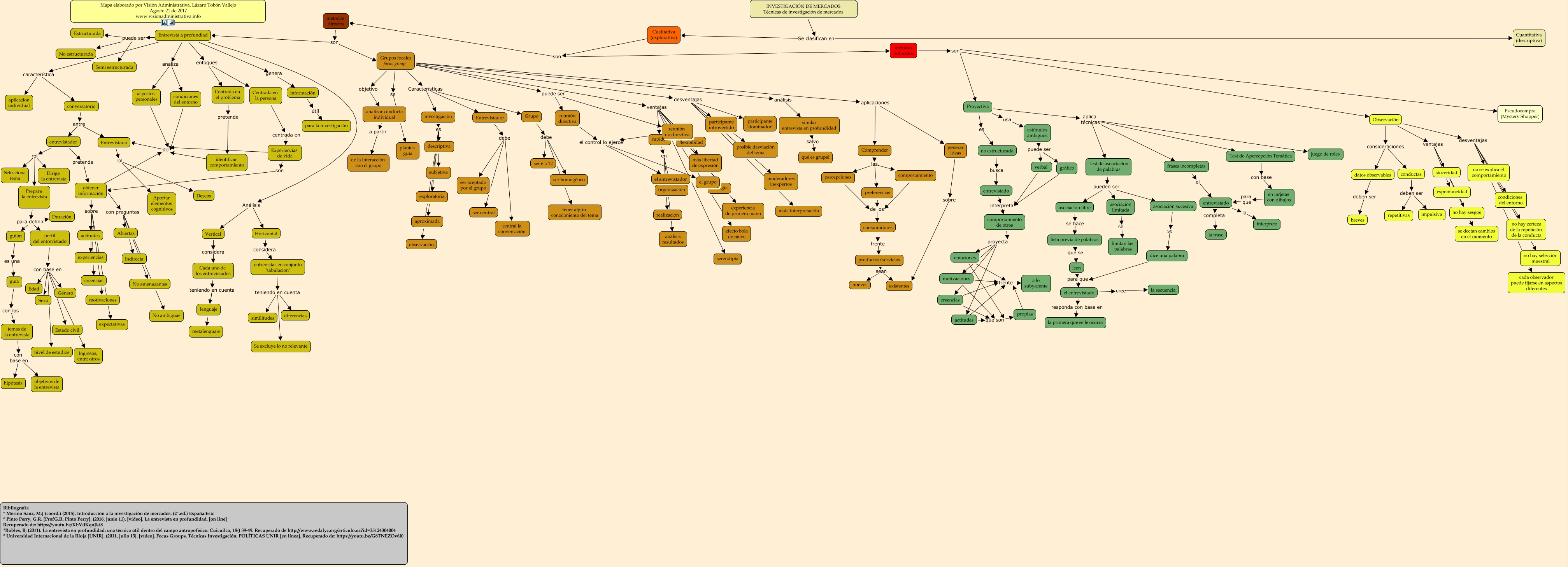Este Cmap, tiene información relacionada con: Técnicas de investigación de mercados, Cada uno de los entrevistados teniendo en cuenta metalenguaje, Centrada en el problema pretende identificar comportamiento, preferencias de los consumidores, Grupos focales focus group ventajas sinergia, Observación ventajas sinceridad, entrevistas en conjunto "tabulación" teniendo en cuenta similitudes, investigación es descriptiva, motivaciones que son propias, Entrevista a profundiad puede ser Estructurada, el entrevistado cree la secuencia, estímulos ambiguos puede ser gráfico, reunión directiva el control lo ejerce el grupo, estímulos ambiguos puede ser verbal, guía con los temas de la entrevista, Grupo debe tener algún conocimiento del tema, Comprender las preferencias, temas de la entrevista con base en hipótesis, obtener información sobre expectativas, Grupo debe ser 6 a 12, Comprender las percepciones