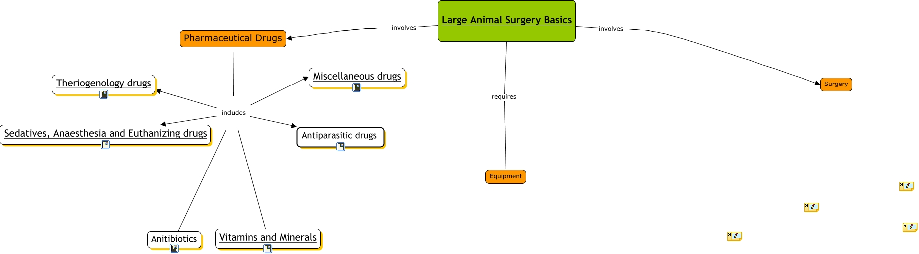 This Concept Map, created with IHMC CmapTools, has information related to: Drugs Charlene's part, Pharmaceutical Drugs includes Theriogenology drugs, Pharmaceutical Drugs includes Miscellaneous drugs, Large Animal Surgery Basics involves Pharmaceutical Drugs, Large Animal Surgery Basics involves Surgery, Pharmaceutical Drugs includes Antiparasitic drugs, Pharmaceutical Drugs includes Sedatives, Anaesthesia and Euthanizing drugs, Pharmaceutical Drugs includes Vitamins and Minerals, Pharmaceutical Drugs includes Anitibiotics, Large Animal Surgery Basics requires Equipment