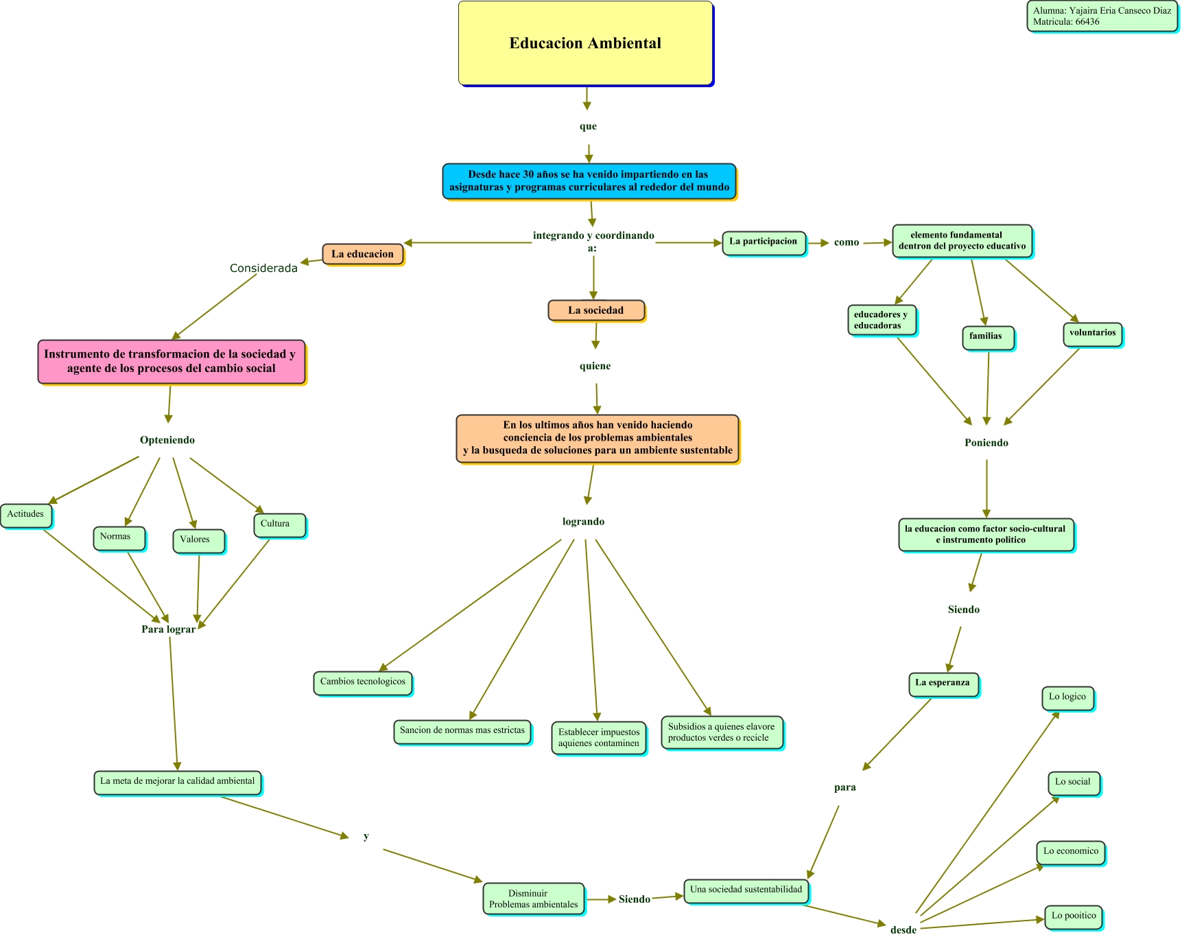 Este Cmap, tiene información relacionada con: yaji, Una sociedad sustentabilidad desde Lo logico, Cultura Para lograr La meta de mejorar la calidad ambiental, Instrumento de transformacion de la sociedad y agente de los procesos del cambio social Opteniendo Actitudes, Instrumento de transformacion de la sociedad y agente de los procesos del cambio social Opteniendo Cultura, La sociedad quiene En los ultimos años han venido haciendo conciencia de los problemas ambientales y la busqueda de soluciones para un ambiente sustentable, En los ultimos años han venido haciendo conciencia de los problemas ambientales y la busqueda de soluciones para un ambiente sustentable logrando Subsidios a quienes elavore productos verdes o recicle, elemento fundamental dentron del proyecto educativo ???? familias, Instrumento de transformacion de la sociedad y agente de los procesos del cambio social Opteniendo Actitudes, En los ultimos años han venido haciendo conciencia de los problemas ambientales y la busqueda de soluciones para un ambiente sustentable logrando Establecer impuestos aquienes contaminen, Instrumento de transformacion de la sociedad y agente de los procesos del cambio social Opteniendo Normas, En los ultimos años han venido haciendo conciencia de los problemas ambientales y la busqueda de soluciones para un ambiente sustentable logrando Sancion de normas mas estrictas, En los ultimos años han venido haciendo conciencia de los problemas ambientales y la busqueda de soluciones para un ambiente sustentable logrando Cambios tecnologicos, La educacion Considerada Instrumento de transformacion de la sociedad y agente de los procesos del cambio social, Normas Para lograr La meta de mejorar la calidad ambiental, La esperanza para Una sociedad sustentabilidad, Valores Para lograr La meta de mejorar la calidad ambiental, elemento fundamental dentron del proyecto educativo ???? voluntarios, Actitudes Para lograr La meta de mejorar la calidad ambiental, Una sociedad sustentabilidad desde Lo economico, Desde hace 30 años se ha venido impartiendo en las asignaturas y programas curriculares al rededor del mundo integrando y coordinando a: ????