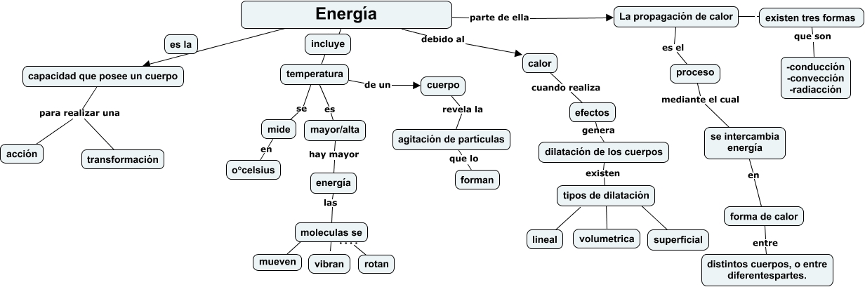 Este Cmap, tiene información relacionada con: vanina godoy, tipos de dilatación ???? superficial, existen tres formas que son -conducción -convección -radiacción, mayor/alta hay mayor energía, incluye ???? temperatura, cuerpo revela la agitación de partículas, Energía ???? incluye, energía las moleculas se, temperatura de un cuerpo, calor cuando realiza efectos, se intercambia energía en forma de calor, moleculas se vibran, tipos de dilatación ???? lineal, tipos de dilatación ???? volumetrica, temperatura es mayor/alta, dilatación de los cuerpos existen tipos de dilatación, capacidad que posee un cuerpo para realizar una transformación, forma de calor entre distintos cuerpos, o entre diferentespartes., agitación de partículas que lo forman, La propagación de calor es el proceso, proceso mediante el cual se intercambia energía