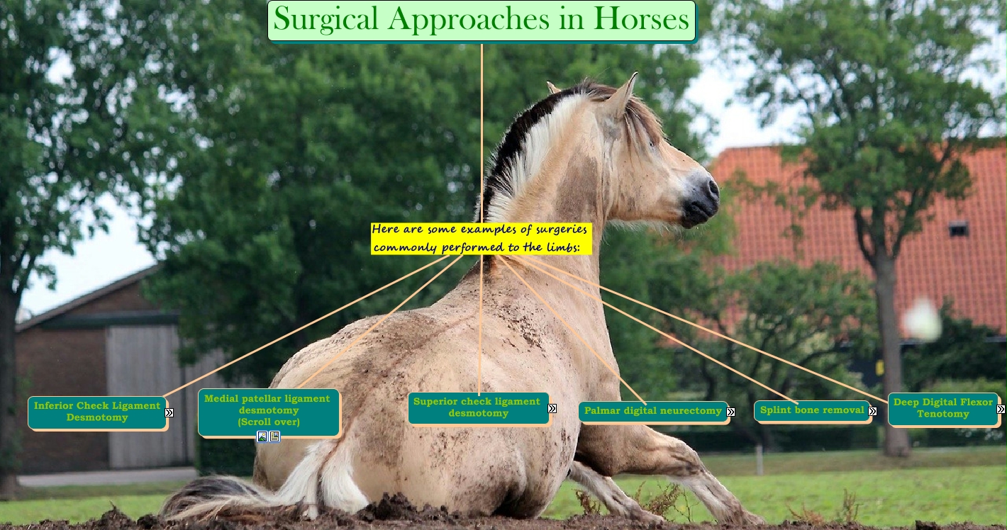 This Concept Map, created with IHMC CmapTools, has information related to: draft 2, Surgical Approaches in Horses Here are some examples of surgeries commonly performed to the limbs: Splint bone removal, Surgical Approaches in Horses Here are some examples of surgeries commonly performed to the limbs: Deep Digital Flexor Tenotomy, Surgical Approaches in Horses Here are some examples of surgeries commonly performed to the limbs: Superior check ligament desmotomy, Palmar digital neurectomy includes Preoperative, Superior check ligament desmotomy include intra- operative, Deep Digital Flexor Tenotomy Involves the following Intra-Operative Considerations, Deep Digital Flexor Tenotomy Involves the following Pre-Operative Considerations (scroll over), Superior check ligament desmotomy include pre- operative, Surgical Approaches in Horses Here are some examples of surgeries commonly performed to the limbs: Medial patellar ligament desmotomy (Scroll over), Intra-Operative Considerations Where it is done Regional Anatomy, Inferior Check Ligament Desmotomy Involves the following Post-Operative Considerations (scroll over), Palmar digital neurectomy involves Relevant anatomy, Intra-Operative Considerations How it is done Demonstration(s), Deep Digital Flexor Tenotomy Involves the following Post-Operative Considerations (scroll over), Inferior Check Ligament Desmotomy Involves the following Pre-Operative Considerations (scroll over), Splint bone removal includes Intraoperative, Inferior Check Ligament Desmotomy Involves the following Intra-Operative Considerations, Intra-Operative Considerations How it is done? Demonstration(s), Intra-Operative Considerations Where it is done? Regional Anatomy, Palmar digital neurectomy includes Intraoperative