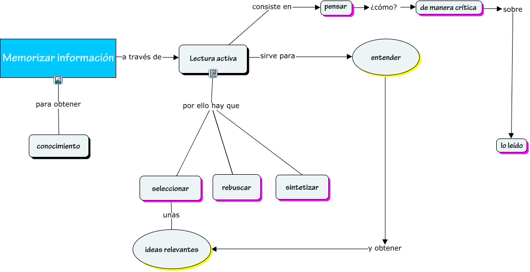 Questa Cmap, creata con IHMC CmapTools, contiene informazioni relative a: mapa, Lectura activa por ello hay que seleccionar, Memorizar información a través de Lectura activa, Lectura activa por ello hay que rebuscar, de manera crítica sobre lo leído, Lectura activa sirve para entender, pensar ¿cómo? de manera crítica, Lectura activa por ello hay que rebuscar, Memorizar información para obtener conocimiento, seleccionar unas ideas relevantes, entender y obtener ideas relevantes, Lectura activa por ello hay que sintetizar, Lectura activa consiste en pensar