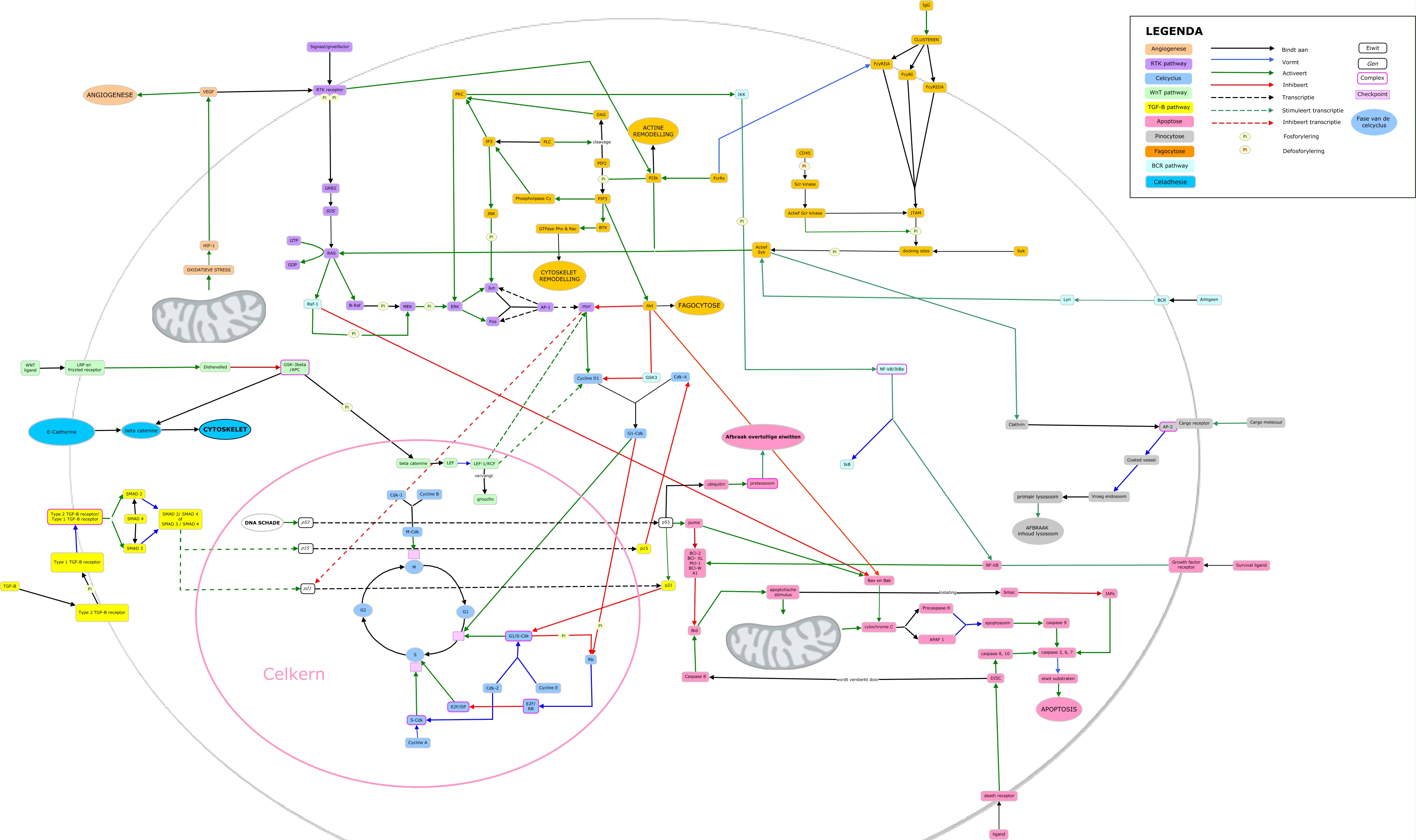 Deze Concept Map heeft informatie gerelateerd aan: CMAP totaal versie 1, BCR Lyn, GTPase Pho & Rac CYTOSKELET REMODELLING, PIP3 BTK, caspase 3, 6, 7 eiwit substraten, G1-Cdk Rb, LEF-1/RCF myc, p21 G1/S-Cdk, AP-1 Jun, Type 2 TGF-B receptor/ Type 1 TGF-B receptor SMAD 2, caspase 8, 10 caspase 3, 6, 7, FcrRs PI3k, Signaal/groeifactor RTK receptor,, Rb E2F/ RB, Actief Syk Clathrin, Clathrin AP-2, G2 M, PLC IP3, E2F/DP S, BCl-2 BCl- XL Mcl-1 BCl-W A1 Bid