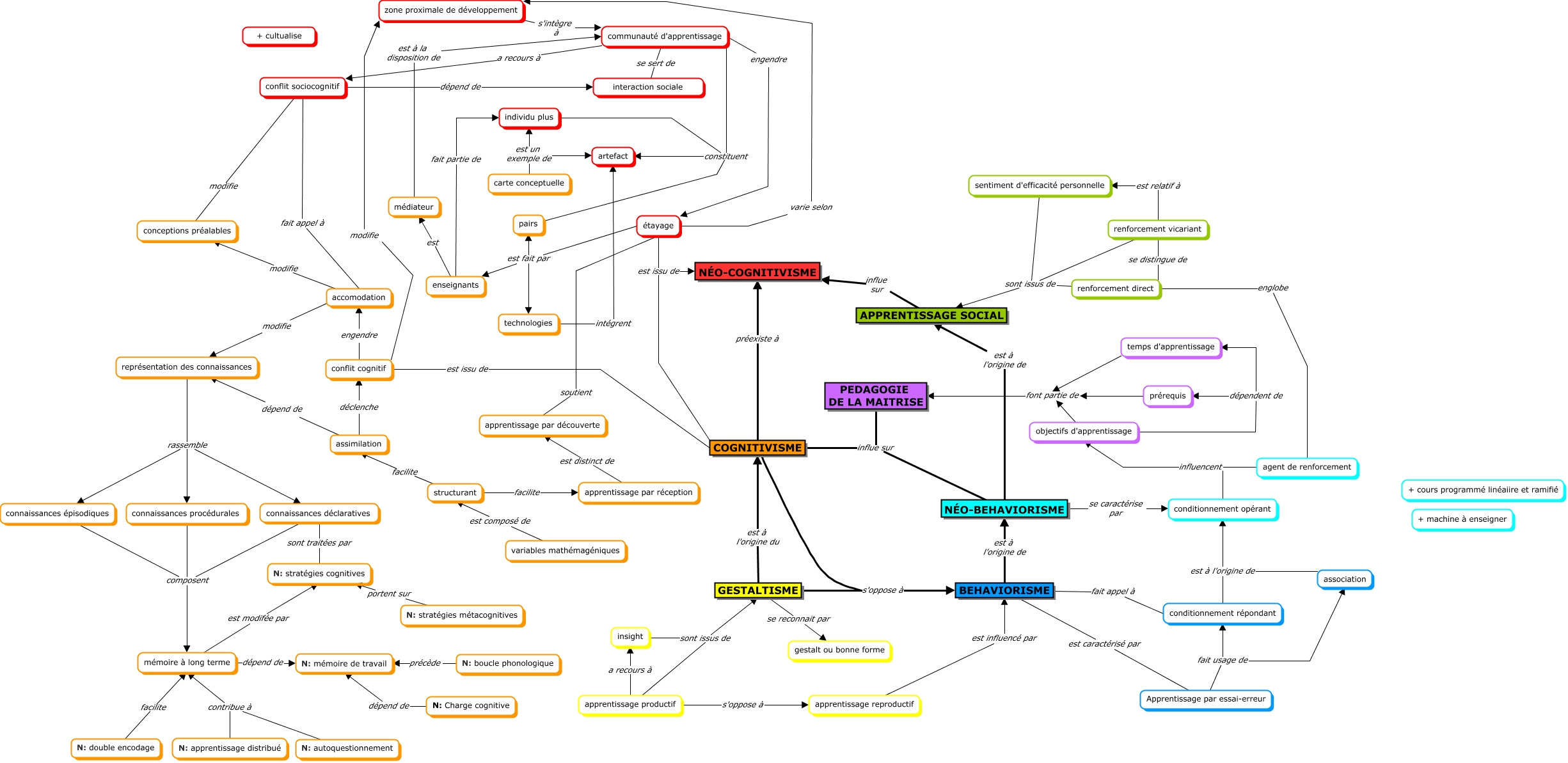 Cette carte de concepts créée avec IHMC CmapTools traite de: carte collaborative 04 G13, assimilation déclenche conflit cognitif, étayage varie selon zone proximale de développement, insight sont issus de GESTALTISME, N: boucle phonologique précède N: mémoire de travail, association est à l'origine de conditionnement opérant, conflit sociocognitif dépend de interaction sociale, communauté d'apprentissage engendre étayage, apprentissage productif s'oppose à apprentissage reproductif, connaissances épisodiques composent mémoire à long terme, mémoire à long terme est modifée par N: stratégies cognitives, prérequis font partie de PEDAGOGIE DE LA MAITRISE, enseignants fait partie de individu plus, NÉO-BEHAVIORISME se caractérise par conditionnement opérant, renforcement vicariant est relatif à sentiment d'efficacité personnelle, GESTALTISME est à l'origine du COGNITIVISME, communauté d'apprentissage a recours à conflit sociocognitif, variables mathémagéniques est composé de structurant, étayage soutient apprentissage par découverte, objectifs d'apprentissage font partie de PEDAGOGIE DE LA MAITRISE, pairs constituent communauté d'apprentissage