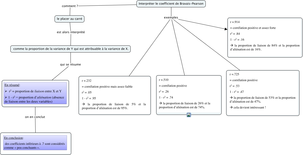 Cette carte de concepts créée avec IHMC CmapTools traite de: 2.6.3 Comment interpréter le coefficient de Bravais-Pearson, Interpréter le coefficient de Bravais-Pearson exemples, le placer au carré est alors interprété comme la proportion de la variance de Y qui est attribuable à la variance de X., on en conclut, Interpréter le coefficient de Bravais-Pearson exemples, comme la proportion de la variance de Y qui est attribuable à la variance de X. qui se résume, Interpréter le coefficient de Bravais-Pearson exemples, Interpréter le coefficient de Bravais-Pearson exemples, Interpréter le coefficient de Bravais-Pearson comment ? le placer au carré