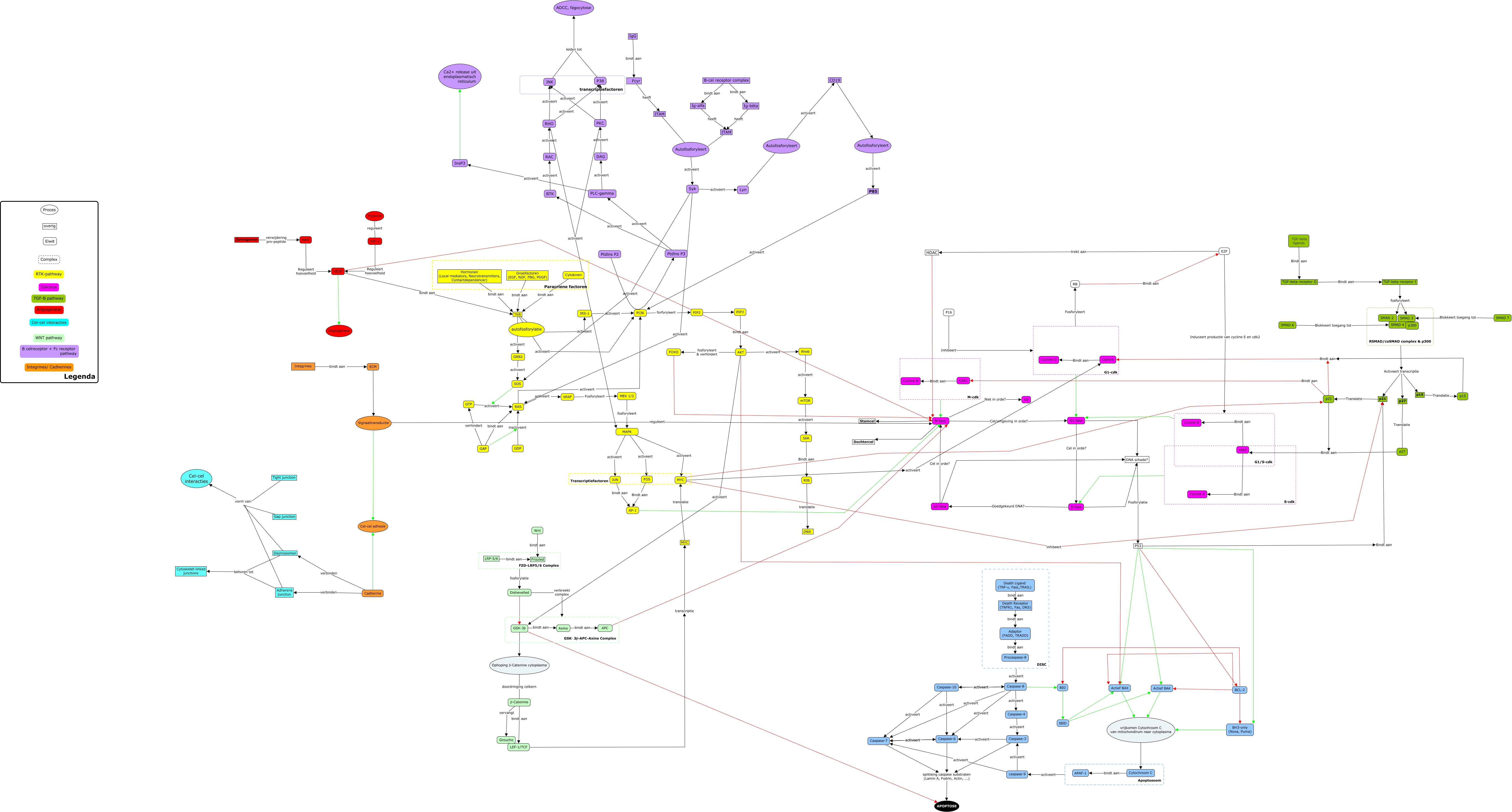 Deze Concept Map heeft informatie gerelateerd aan: pathway bijna af, Ig-alfa heeft ITAM, GAP bindt aan RAS, AKT Actief BAX, GTP activeert RAS, p21 Bindt aan Cdk1, VEGF M-fase, M-cdk M-fase, Groeifactoren (EGF, NGF, FBG, PDGF) bindt aan TKR, GSK-3β bindt aan Axine, Caspase-8 activeert Caspase-10, P16 Inhibeert G1-cdk, Adaptor (FADD, TRADD) bindt aan Procaspase-8, S6K Bindt aan RIB, GRB2 activeert SOS, Ptdlns P3 activeert BTK, Hypoxie reguleert HIF-1, M-fase Niet in orde? G0, Syk activeert RAS, TGF-beta ligands Bindt aan TGF-beta receptor II, Ophoping β-Catenine cytoplasma doordringing celkern β-Catenine