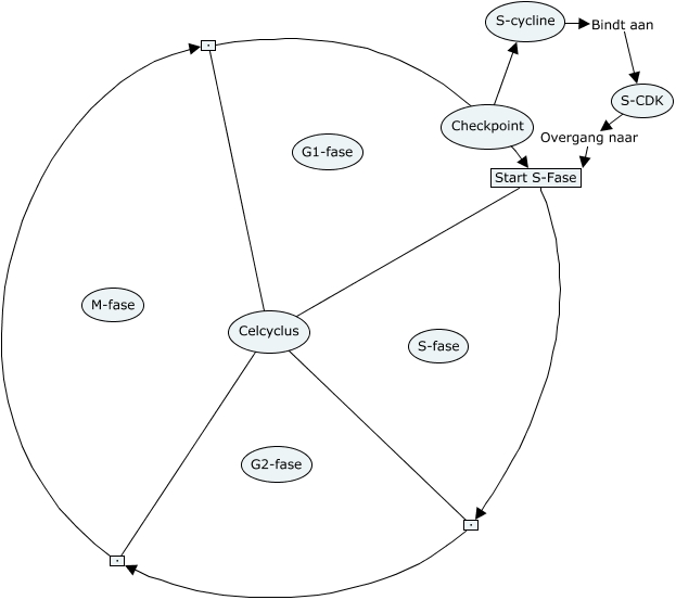Deze Concept Map heeft informatie gerelateerd aan: 1e versie, Start S-Fase ., . ., S-CDK Overgang naar Start S-Fase, Celcyclus ., Celcyclus ., Celcyclus Start S-Fase, . ., Checkpoint S-cycline, Celcyclus ., S-cycline Bindt aan S-CDK, . Start S-Fase