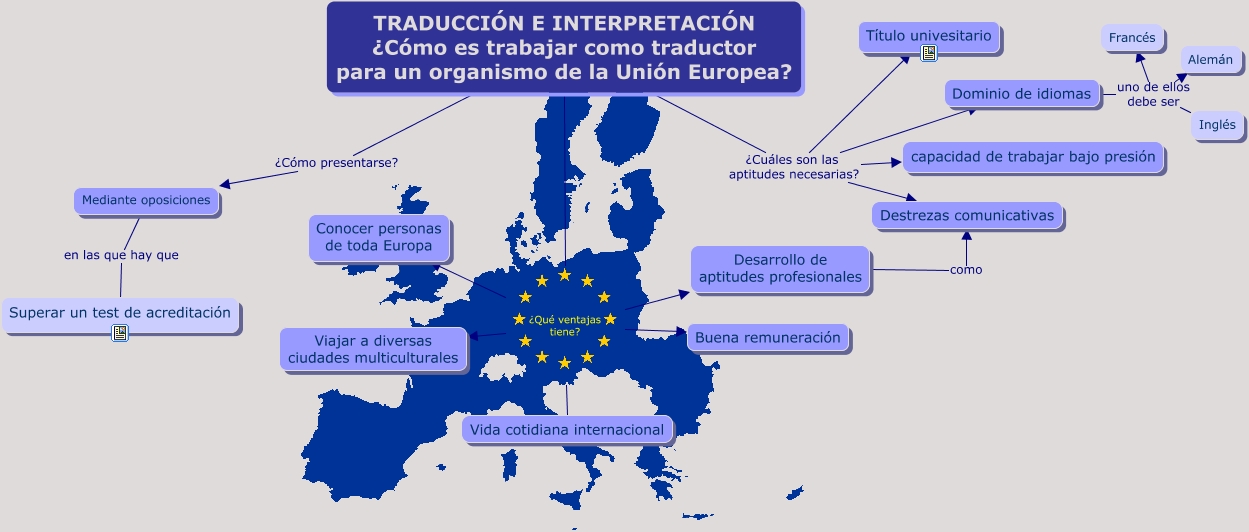 Este Cmap, tiene información relacionada con: TraductorUEmarta, Desarrollo de aptitudes profesionales como Destrezas comunicativas, Dominio de idiomas uno de ellos debe ser Francés, TRADUCCIÓN E INTERPRETACIÓN ¿Cómo es trabajar como traductor para un organismo de la Unión Europea? ¿Qué ventajas tiene? Conocer personas de toda Europa, TRADUCCIÓN E INTERPRETACIÓN ¿Cómo es trabajar como traductor para un organismo de la Unión Europea? ¿Qué ventajas tiene? Buena remuneración, TRADUCCIÓN E INTERPRETACIÓN ¿Cómo es trabajar como traductor para un organismo de la Unión Europea? ¿Qué ventajas tiene? Viajar a diversas ciudades multiculturales, TRADUCCIÓN E INTERPRETACIÓN ¿Cómo es trabajar como traductor para un organismo de la Unión Europea? ¿Cómo presentarse? Mediante oposiciones, TRADUCCIÓN E INTERPRETACIÓN ¿Cómo es trabajar como traductor para un organismo de la Unión Europea? ¿Cuáles son las aptitudes necesarias? Dominio de idiomas, TRADUCCIÓN E INTERPRETACIÓN ¿Cómo es trabajar como traductor para un organismo de la Unión Europea? ¿Qué ventajas tiene? Vida cotidiana internacional, TRADUCCIÓN E INTERPRETACIÓN ¿Cómo es trabajar como traductor para un organismo de la Unión Europea? ¿Cuáles son las aptitudes necesarias? capacidad de trabajar bajo presión, TRADUCCIÓN E INTERPRETACIÓN ¿Cómo es trabajar como traductor para un organismo de la Unión Europea? ¿Qué ventajas tiene? Desarrollo de aptitudes profesionales, TRADUCCIÓN E INTERPRETACIÓN ¿Cómo es trabajar como traductor para un organismo de la Unión Europea? ¿Cuáles son las aptitudes necesarias? Título univesitario, Dominio de idiomas uno de ellos debe ser Inglés, Mediante oposiciones en las que hay que Superar un test de acreditación, TRADUCCIÓN E INTERPRETACIÓN ¿Cómo es trabajar como traductor para un organismo de la Unión Europea? ¿Cuáles son las aptitudes necesarias? Destrezas comunicativas, Dominio de idiomas uno de ellos debe ser Alemán