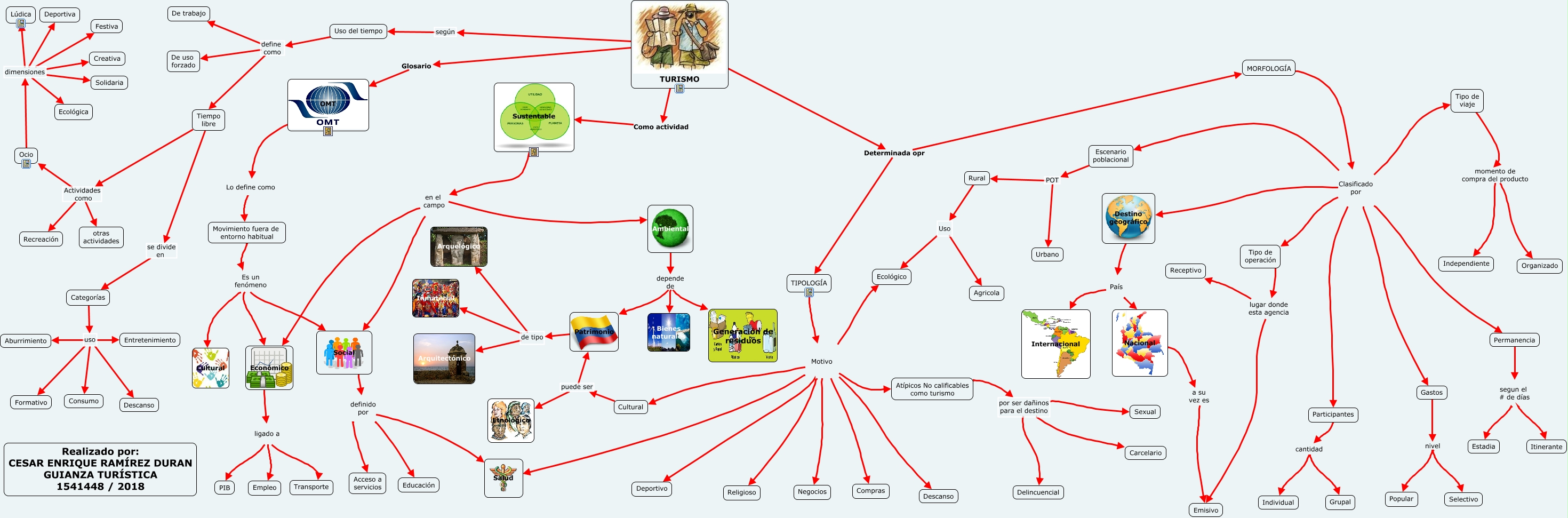 Este Cmap, tiene información relacionada con: MAPA CONCEPTUAL TURISMO 2018, OMT Lo define como Movimiento fuera de entorno habitual, Económico ligado a PIB, Atípicos No calificables como turismo por ser dañinos para el destino Carcelario, Uso del tiempo define como Tiempo libre, MORFOLOGÍA Clasificado por Escenario poblacional, Social definido por Acceso a servicios, MORFOLOGÍA Clasificado por Destino geográfico, Sustentable en el campo Económico, Permanencia segun el # de días Estadia, TURISMO Determinada opr TIPOLOGÍA, Rural Uso Agricola, TIPOLOGÍA Motivo Religioso, Gastos nivel Popular, Categorías uso Descanso, Nacional a su vez es Emisivo, Patrimonio de tipo Inmaterial, Sustentable en el campo Social, Atípicos No calificables como turismo por ser dañinos para el destino Delincuencial, Tipo de viaje momento de compra del producto Organizado, Uso del tiempo define como De trabajo
