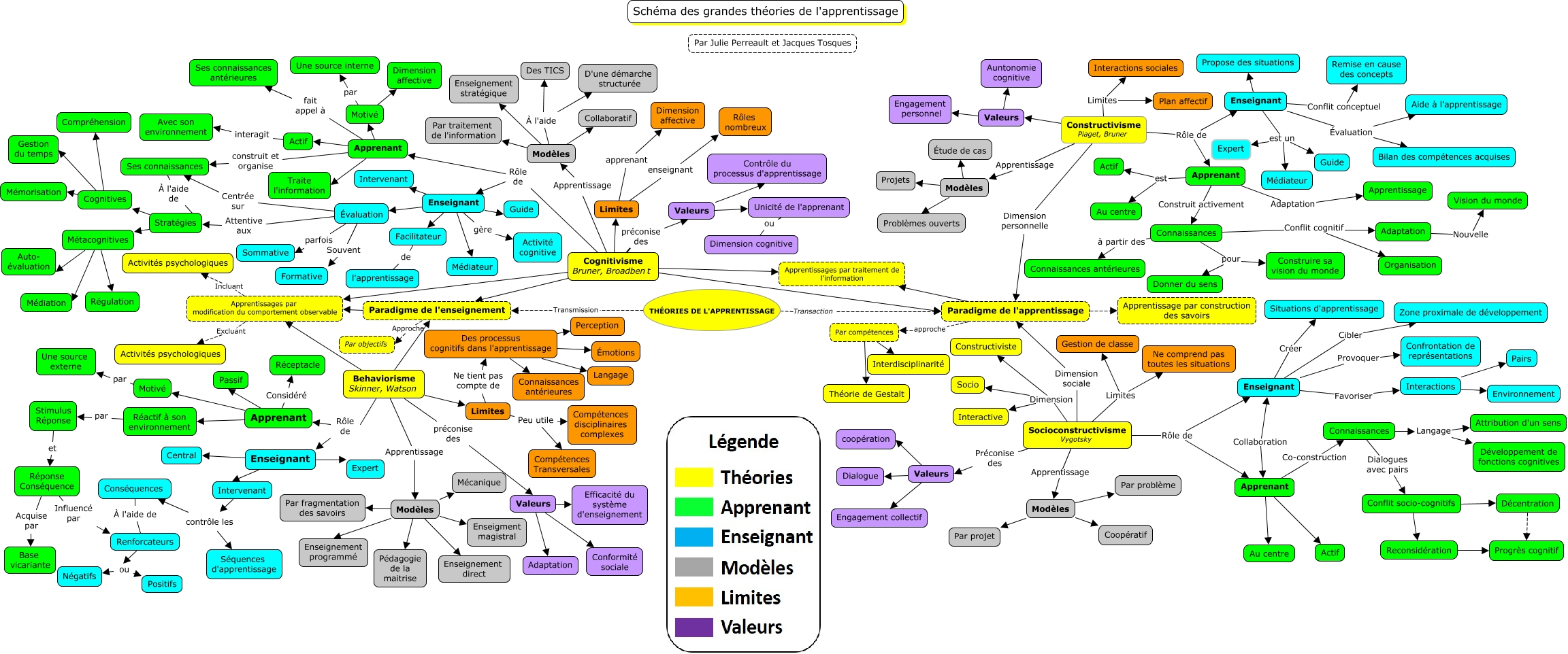Cette carte de concepts créée avec IHMC CmapTools traite de: Perreault_Tosques.correction.cmap, Socioconstructivisme Vygotsky Limites Gestion de classe, Limites apprenant Dimension affective, Constructivisme Piaget, Bruner Rôle de Enseignant, Enseignant Expert, Reconsidération Progrès cognitif, Connaissances Langage Attribution d'un sens, Apprenant est Au centre, Paradigme de l'enseignement Approche Par objectifs, Conséquences À l'aide de Renforcateurs, Valeurs Efficacité du système d'enseignement, Renforcateurs ou Positifs, Modèles Par traitement de l'information, Cognitives Mémorisation, Cognitivisme Bruner, Broadbent Limites, Connaissances Langage Développement de fonctions cognitives, Stimulus Réponse et Réponse Conséquence, Socioconstructivisme Vygotsky Apprentissage Modèles, Modèles Par problème, Behaviorisme Skinner, Watson Limites, Connaissances Conflit cognitif Organisation