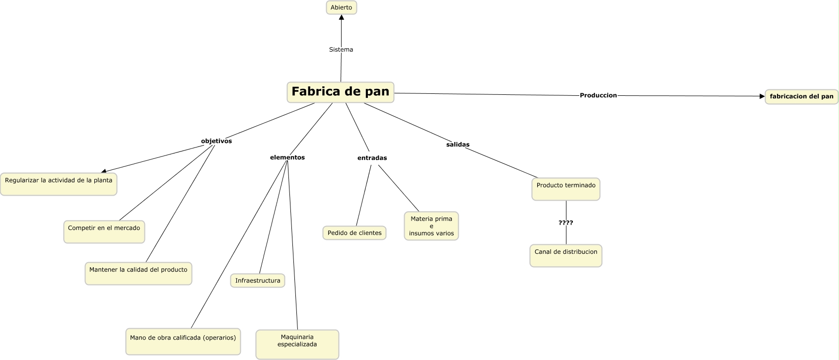 This Concept Map, created with IHMC CmapTools, has information related to: Untitled, Fabrica de pan elementos Maquinaria especializada, Fabrica de pan objetivos Mantener la calidad del producto, Fabrica de pan elementos Infraestructura, Producto terminado ???? Canal de distribucion, Fabrica de pan Sistema Abierto, Fabrica de pan salidas Producto terminado, Pedido de clientes entradas Materia prima e insumos varios, Fabrica de pan elementos Mano de obra calificada (operarios), Fabrica de pan objetivos Regularizar la actividad de la planta, Fabrica de pan Produccion fabricacion del pan, Fabrica de pan entradas Materia prima e insumos varios, Fabrica de pan objetivos Competir en el mercado