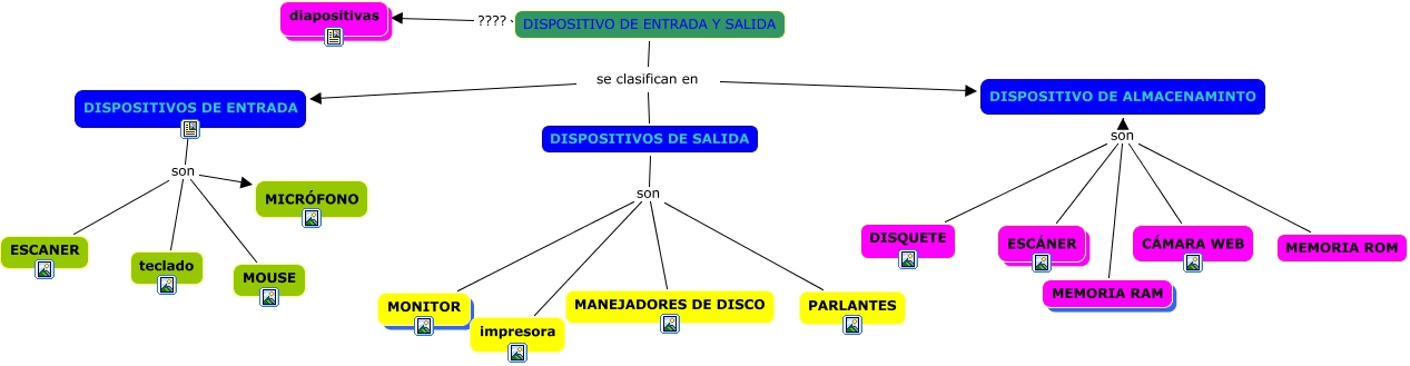 Este Cmap, tiene información relacionada con: dispositovos tercer semestre, DISPOSITIVOS DE SALIDA son MONITOR, DISPOSITIVOS DE ENTRADA son MOUSE, DISPOSITIVO DE ENTRADA Y SALIDA ???? diapositivas, DISPOSITIVO DE ALMACENAMINTO son MEMORIA RAM, DISPOSITIVO DE ENTRADA Y SALIDA se clasifican en DISPOSITIVOS DE SALIDA, DISPOSITIVO DE ALMACENAMINTO son CÁMARA WEB, DISPOSITIVOS DE ENTRADA son teclado, DISPOSITIVO DE ALMACENAMINTO son DISQUETE, DISPOSITIVOS DE SALIDA son MANEJADORES DE DISCO, DISPOSITIVO DE ALMACENAMINTO son MEMORIA ROM, DISPOSITIVOS DE ENTRADA son ESCANER, DISPOSITIVO DE ENTRADA Y SALIDA se clasifican en DISPOSITIVO DE ALMACENAMINTO, DISPOSITIVOS DE SALIDA son impresora, DISPOSITIVO DE ENTRADA Y SALIDA se clasifican en DISPOSITIVOS DE ENTRADA, DISPOSITIVO DE ALMACENAMINTO son ESCÁNER, DISPOSITIVOS DE ENTRADA son MICRÓFONO, DISPOSITIVOS DE SALIDA son PARLANTES