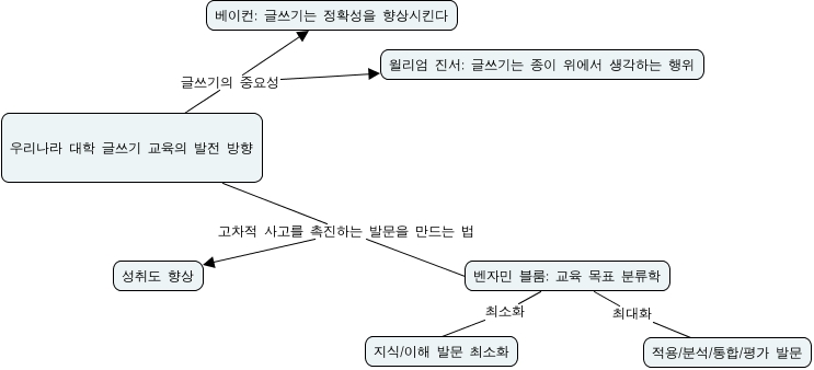 This Concept Map, created with IHMC CmapTools, has information related to: 3번, 우리나라 대학 글쓰기 교육의 발전 방향 고차적 사고를 촉진하는 발문을 만드는 법 성취도 향상, 벤자민 블룸: 교육 목표 분류학 최대화 적용/분석/통합/평가 발문, 우리나라 대학 글쓰기 교육의 발전 방향 고차적 사고를 촉진하는 발문을 만드는 법 벤자민 블룸: 교육 목표 분류학, 벤자민 블룸: 교육 목표 분류학 최소화 지식/이해 발문 최소화, 우리나라 대학 글쓰기 교육의 발전 방향 글쓰기의 중요성 윌리엄 진서: 글쓰기는 종이 위에서 생각하는 행위, 우리나라 대학 글쓰기 교육의 발전 방향 글쓰기의 중요성 베이컨: 글쓰기는 정확성을 향상시킨다