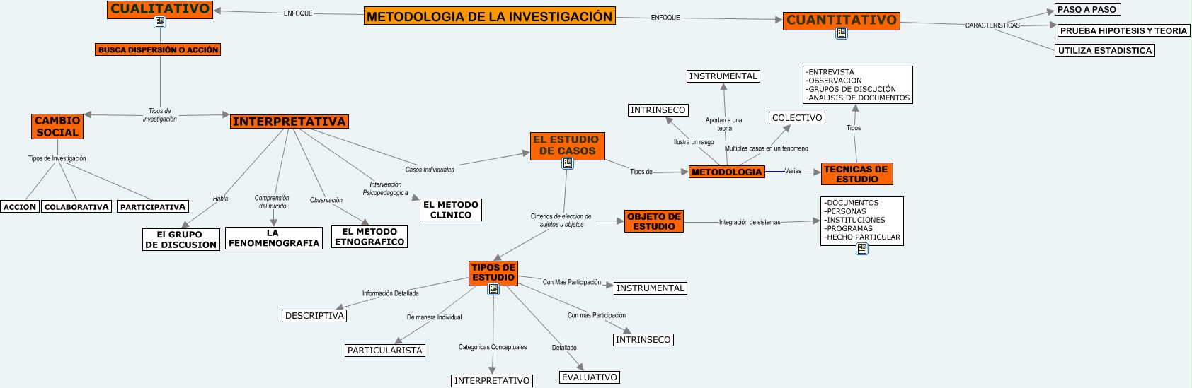 Este Cmap, tiene información relacionada con: ESTRUCTURA DE LA METODOLOGIA DE LA INVESTIGACION, INTERPRETATIVA Casos Individuales EL ESTUDIO DE CASOS, TIPOS DE ESTUDIO Información Detallada DESCRIPTIVA, EL ESTUDIO DE CASOS Cirterios de eleccion de sujetos u objetos OBJETO DE ESTUDIO, TIPOS DE ESTUDIO Categoricas Conceptuales INTERPRETATIVO, CUALITATIVO Tipos de Investigación CAMBIO SOCIAL, EL ESTUDIO DE CASOS Cirterios de eleccion de sujetos u objetos TIPOS DE ESTUDIO, METODOLOGIA Multiples casos en un fenomeno COLECTIVO, CAMBIO SOCIAL Tipos de Investigación PARTICIPATIVA, TIPOS DE ESTUDIO Con mas Participación INTRINSECO, METODOLOGIA Varias TECNICAS DE ESTUDIO, UTILIZA ESTADISTICA CARACTERISTICAS PASO A PASO, CUALITATIVO Tipos de Investigación INTERPRETATIVA, METODOLOGIA Aportan a una teoria INSTRUMENTAL, CUANTITATIVO CARACTERISTICAS PRUEBA HIPOTESIS Y TEORIA, OBJETO DE ESTUDIO Integración de sistemas -DOCUMENTOS -PERSONAS -INSTITUCIONES -PROGRAMAS -HECHO PARTICULAR, ACCION Tipos de Investigación COLABORATIVA, TIPOS DE ESTUDIO Con Mas Participación INSTRUMENTAL, METODOLOGIA DE LA INVESTIGACIÓN ENFOQUE CUANTITATIVO, INTERPRETATIVA Habla El GRUPO DE DISCUSION, TECNICAS DE ESTUDIO Tipos -ENTREVISTA -OBSERVACION -GRUPOS DE DISCUCIÓN -ANALISIS DE DOCUMENTOS