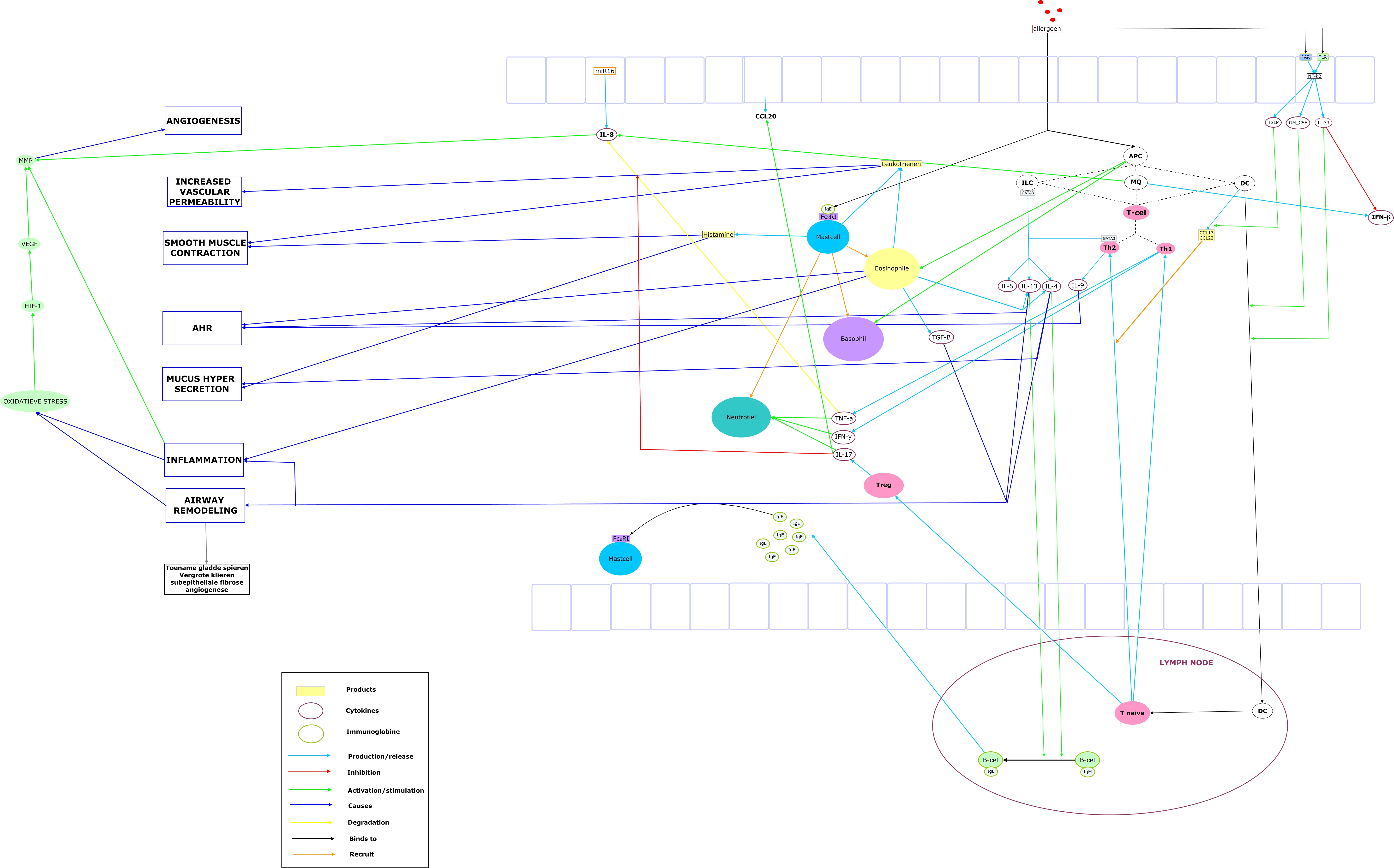 Deze Concept Map heeft informatie gerelateerd aan: astma, IL-4,, IL-13 AHR, Th1 TNF-a, APC DC, IL-17 CCL20, INFLAMMATION, IL-8 MMP, INFLAMMATION OXIDATIEVE STRESS, IL-4 MUCUS HYPER SECRETION, GATA3, Th1 IFN-y,, allergeen PAR, PAR NF-kB, APC MQ, GATA3 IL-13, Treg IL-17, IL-17, Th2 IL-9