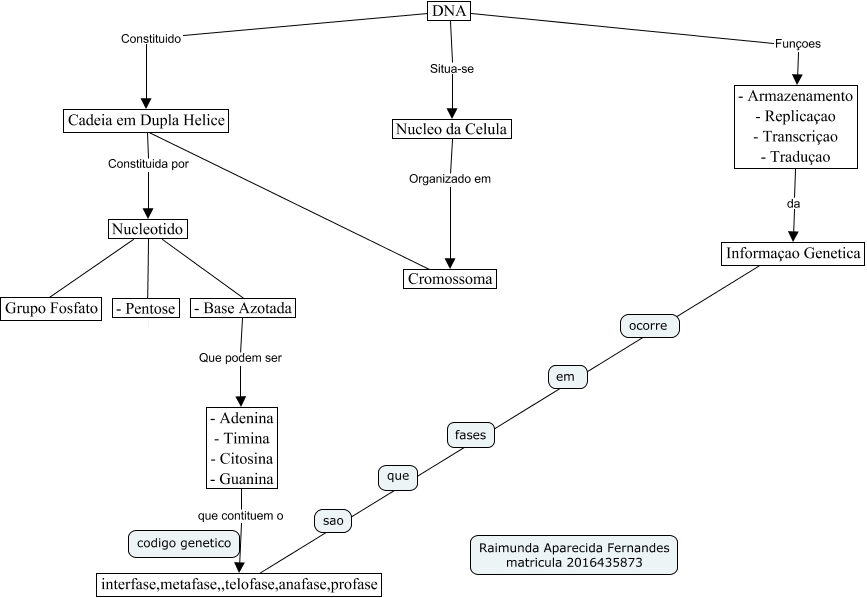 Esse mapa conceitual, produzido no IHMC CmapTools, tem a informação relacionada a: cadeia de dna, Nucleotido Grupo Fosfato, DNA Constituido Cadeia em Dupla Helice, - Base Azotada Que podem ser - Adenina - Timina - Citosina - Guanina, Nucleotido - Pentose, Nucleotido - Base Azotada, DNA Funçoes - Armazenamento - Replicaçao - Transcriçao - Traduçao, Cadeia em Dupla Helice Constituida por Nucleotido, - Armazenamento - Replicaçao - Transcriçao - Traduçao da Informaçao Genetica, Cromossoma Cadeia em Dupla Helice, DNA Situa-se Nucleo da Celula, interfase,metafase,,telofase,anafase,profase Informaçao Genetica, - Adenina - Timina - Citosina - Guanina que contituem o interfase,metafase,,telofase,anafase,profase, Nucleo da Celula Organizado em Cromossoma