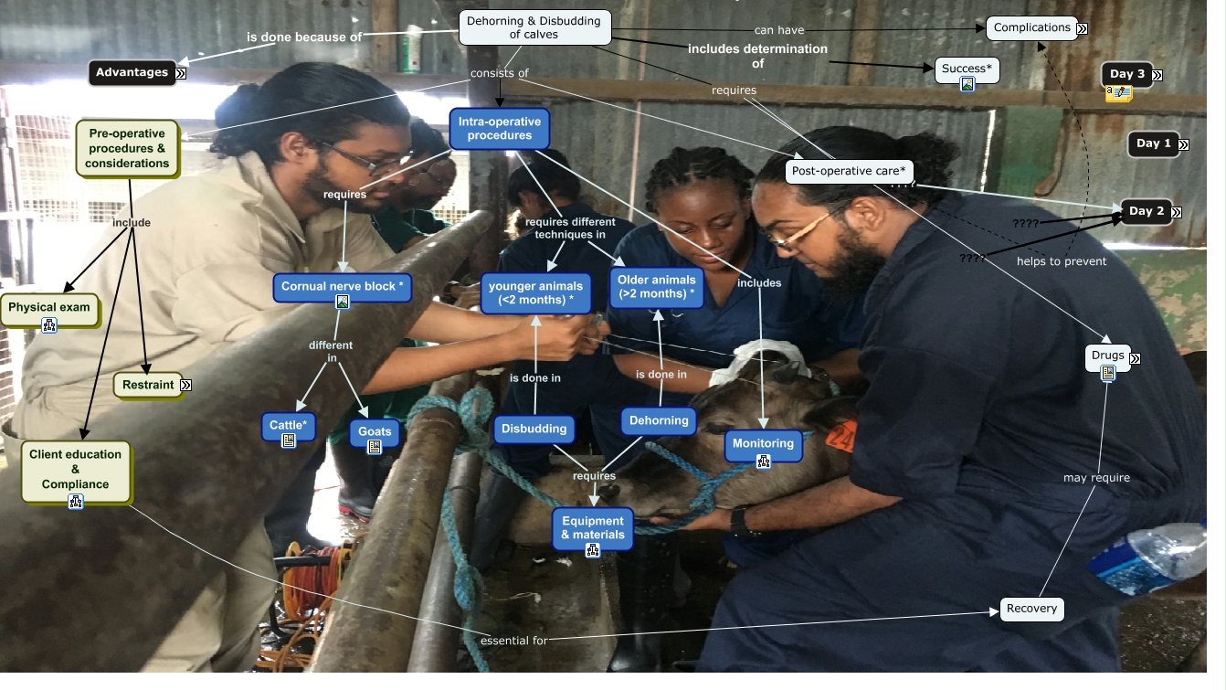 This Concept Map, created with IHMC CmapTools, has information related to: Lab 4 final, Dehorning & Disbudding of calves consists of Pre-operative procedures & considerations, Post-operative care* helps to prevent Complications, Cornual nerve block * different in Cattle*, Intra-operative procedures requires Cornual nerve block *, Dehorning & Disbudding of calves can have Complications, Day 2: PO ???? Patient 264, Why Dehorn? because Increased safety, Pre-operative procedures & considerations include Client education & Compliance, Intra-operative procedures includes Monitoring, Day 2: PO ???? Patient 247, Restraint can be Chemical*, Dehorning & Disbudding of calves is done because of Advantages, Dehorning requires Equipment & materials, Post-operative care* requires Drugs, Why Dehorn? because Less Bruising of cows housed together, Post-operative care* ???? Day 2: PO, Dehorning & Disbudding of calves consists of Intra-operative procedures, Restraint can be Physical*, Pre-operative procedures & considerations include Restraint, Disbudding requires Equipment & materials